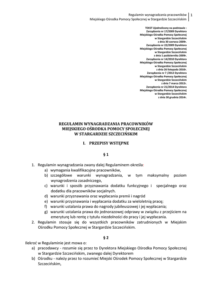 Regulamin wynagradzania - MOPS Stargard Szczeciński