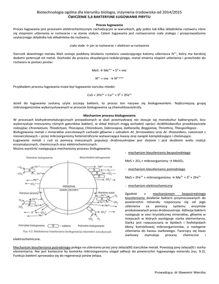ćwiczenie 5/6 bakteryjne ługowanie pirytu