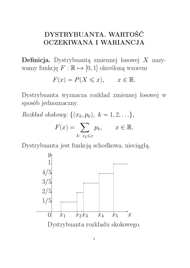 Dystrybuanta jest funkcją schodkowa, nieciągłą.