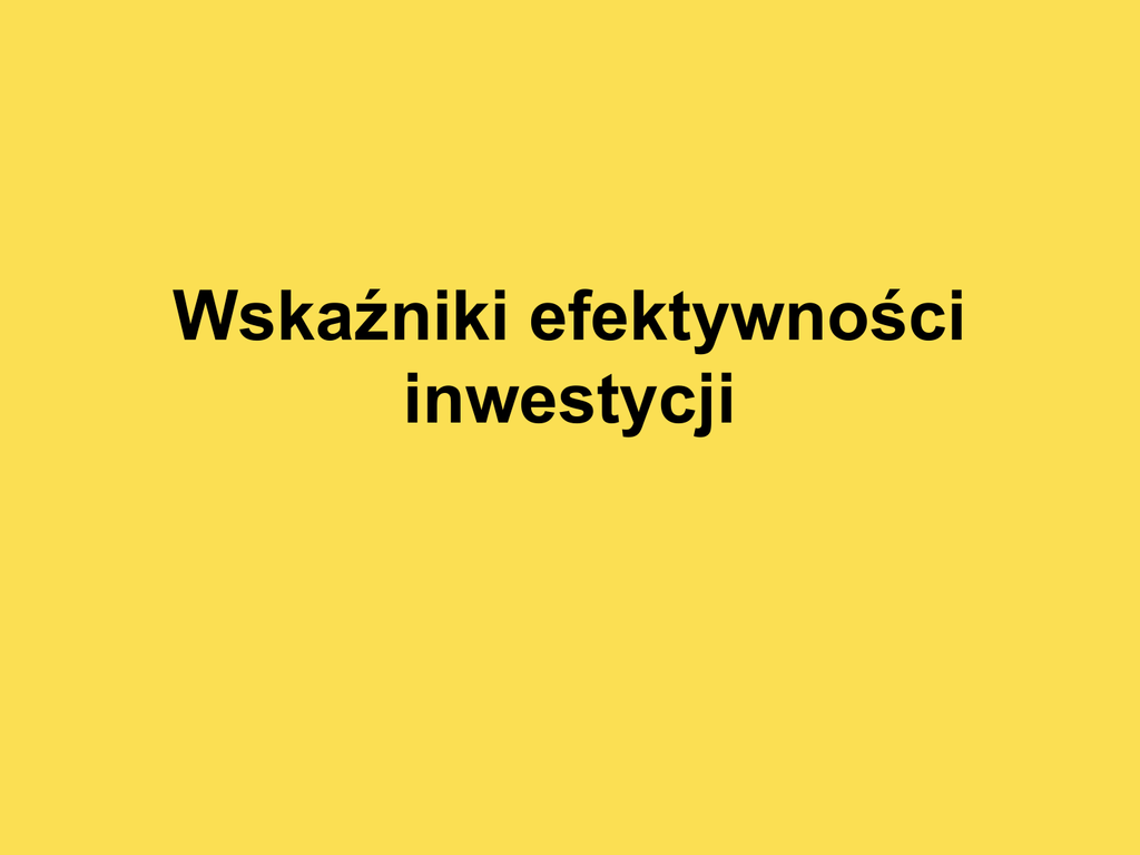 Wskaźniki efektywności inwestycji Efektywność inwestycji • Realizacja przedsięwzięć usprawniających użytkowanie energii najczęściej wymaga poniesienia nakładów finansowych na zakup materiałów, urządzeń, i sfinansowanie odpowiednich prac. • Inwestor oczekuje, że osiągnięte w wyniku modernizacji oszczędności wystarczą na pokrycie poniesionych nakładów. Analiza opłacalności przedsięwzięcia = relacja między nakładami i zyskami Analiza ekonomiczna jest podstawą do podjęcia decyzji: • czy modernizację warto przeprowadzić , • wyboru pomiędzy alternatywnymi wariantami inwestycji. Kryteria opłacalności - założenia metoda UNIDO • • • • wycena nakładów oraz określenie efektów zostały wykonane według stałych cen rynkowych obowiązujących w roku bazowym, przedsięwzięcie rozpoczyna funkcjonowanie w pierwszym roku eksploatacji i przynosi założony efekt, istnieje doskonały rynek finansowy, w związku z czym możliwe jest udzielanie i pobieranie pożyczek przy niezmiennej stopie procentowej, koszty i efekty przedsięwzięcia określone zostały w sposób pewny. Kryteria opłacalności -statyczne • Nie uwzględniają zdyskontowanej wartości pieniądza, co oznacza, że kwota wpłacana (np. w celu uregulowania należności) czy otrzymywana w przyszłości ma taką samą wartość nominalną jak kwota wpłacana czy otrzymywana obecnie. • Z tego powodu statyczne kryteria decyzyjne mogą być stosowane jedynie do oceny przedsięwzięć krótkoterminowych. Kryteria opłacalności - dynamiczne • Uwzględniają zmienną w czasie, czyli odpowiednio dyskontowaną, wartość pieniądza • Nie jest możliwe proste sumowanie przepływów gotówkowych w poszczególnych latach, aby otrzymać wartość końcową lub bieżącą Kryteria opłacalności -statyczne SPBT (Simple Pay Back Time) – prosty czas zwrotu SPBT =Nakłady/Efekty= I/O gdzie: I - jest to nakład inwestycyjny, zaś efekt ekonomiczny (O) jest sumą zysków (zmniejszonych o podatek), amortyzację i koszty finansowe. Zakłada się, że nakłady poniesione zostały w jednym roku, zaś efekty osiągane są już w pierwszym roku działalności i są stałe SPBT - przykład • Zrealizowano inwestycję, która wymagała poniesienia jednorazowych nakładów w wysokości Io = 600 tys. zł. Roczną oszczędność w kosztach ponoszonych na energię szacuje się na rkeo = 175 tys. zł/rok. Zakładane jest, że okres zwrotu możliwy do zaakceptowania nie może przekroczyć 4 lat. Określić prosty okres zwrotu nakładów. • SPBT = 600 tys. zł/175 tys. zł/rok = 3,43 roku • Okres zwrotu nie przekracza 4 lat, co znaczy, że przedsięwzięcie spełnia kryteria wymagane przez inwestora. Kryteria opłacalności -statyczne PBT (Pay Back Time) – czas zwrotu nakładów • Dopuszcza zmienność wielkości nakładów i efektów w kolejnych okresach. PBT = T PBT - przykład Zrealizowano inwestycję, która wymagała poniesienia nakładów w w I roku w wysokości 500 tys. zł, II roku – 200 tys. zł i III roku - 200 tys. zł. Wartość oczekiwanych efektów w kolejnych latach będzie wynosić: 100 tys. zł, 150 tys. zł, 200 tys. zł, 250 tys. zł, 300 tys. zł, 350 tys. zł. Okres zwrotu możliwy do zaakceptowania nie może przekraczać 4 lat. Określić okres zwrotu nakładów. Kolejne lata Nakłady [tys zł] Efekty tys. zł Saldo roczne Saldo skumulowane 0 500 -500 -500 1 200 100 -100 -600 2 200 150 -50 -650 3 200 200 -450 4 0 250 250 -200 5 0 300 300 100 6 0 350 350 450 Suma efektów przewyższy wydatek inwestycyjny dopiero pomiędzy 4 a 5 rokiem, co oznacza, że wymagania stawiane przez inwestora nie są spełnione. Kryteria opłacalności - dynamiczne Wartość bieżąca netto - NPV(Net Present Value) ( Efekty Naklady) n NPV n (1 i ) n 0 N przy czym : n - rok funkcjonowania inwestycji i - zewnętrzna stopa dyskontowa, odzwierciedlająca alternatywną stopę zwrotu (koszt utraconych korzyści) N - ekonomiczny czas życia inwestycji NPV - przykład • Dwuletnia inwestycja przynosi 80 jednostek w pierwszym roku i 40 jednostek w drugim . Obliczyć NPV dla tej inwestycji zakładając , iż kapitał początkowy wynosi 100 jednostek , a stopa dyskontowa i = 10 % . • Rozwiązanie : NPV 80 40 100 72,72(72) 33,0578 100 5,7851 1 2 (1 0,1) (1 0,1) • Inwestycja ta , rozpatrywana pod kątem tego wskaźnika, jest korzystna . Korzystniejsza niż ulokowanie 100 jednostek na dwa lata przy oprocentowaniu 10% rocznie. NPV jako kryterium opłacalności Warunkiem opłacalności przedsięwzięcia jest: NPV > 0 1.Jeśli jest możliwe opracowanie kilku wariantów przedsięwzięcia modernizacyjnego, charakteryzującego się identycznymi co do wartości i rozłożenia w czasie nakładami inwestycyjnymi, to proponujemy realizację takiego, dla którego NPV = max NPV - przykład 1. Zestawienie nakładów Modernizacja oświetlenia ulic wymaga poniesienia nakładów 620 tys. zł (koszty realizacji, audyt, przykład, nadzór) Na realizację tej inwestycji został zaciągnięty kredyt w wysokości 510 tys. zł na 3 lata (roczna rata kapitałowa 170 tys. zł) oraz przeznaczone są środki własne 110 tys. zł. Odsetki od kredytu wyniosą: - w pierwszym roku spłaty kredytu (40 % od sumy 510 tys. zł) 204 tys. zł - w drugim roku spłaty kredytu (40 % od sumy 340 tys. zł) 136 tys. zł - w trzecim roku spłaty kredytu (40 % od sumy 170 tys. zł) 68 tys. zł Sumaryczne koszty kapitałowe 408 tys. zł 2. Zestawienie efektów Obniżenie kosztów eksploatacji - oszczędność wyniesie rocznie 255 tys. zł Zwiększenie rocznych kosztów konserwacji po mode rnizacji 18 tys. zł Oszczędność roczna netto 237 tys. zł NPV – przykład cd. Dla obliczenia zdyskontowanych przepływów pieniężnych obliczamy różnice przychodów (+) i wydatków (-) dla poszczególnych lat: Rok 1: nakłady inwestycyjne -620 - 110 kredyt +510 Rok 2 oszczędności eksploatacyjne +237 -138 spłata kredytu -170 odsetki -204 Rok 3 oszczędności