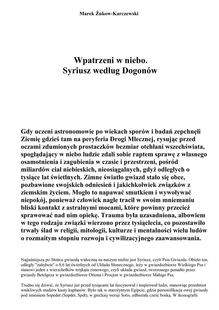 Wpatrzeni w niebo. Syriusz według Dogonów
