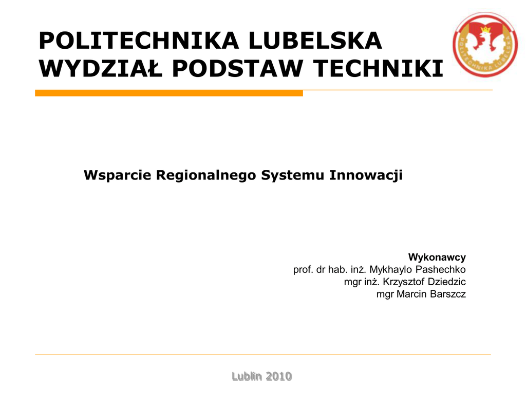 POLITECHNIKA LUBELSKA WYDZIAŁ PODSTAW TECHNIKI Wsparcie Regionalnego Systemu Innowacji Wykonawcy prof. dr hab. inż. Mykhaylo Pashechko mgr inż. Krzysztof Dziedzic mgr Marcin Barszcz Lublin 2010 Tematyka badawcza 1. 2. 3. 4. 5. Otrzymywanie stopów eutektycznych układu Fe-Mn-C-B stopowanych krzemem, niklem, chromem, wolframem Dobór składu stopiwa eutektycznego przy wytwarzaniu elektrod oraz drutów proszkowych Opracowanie technologii napawania powłok na części maszyn pracujących w warunkach zużycia ściernego Badania intensywności zużywania powłok eutektycznych Badania zjawisk fizyko-chemicznych zachodzących na powierzchni tarcia Lublin 2010 2 Problem badawczy Podwyższenie trwałości noży wykorzystywanych w urządzeniach do rozdrabniania opon poprzez opracowanie nowej technologii napawania przy zastosowaniu opracowanych stopów eutektycznych 1. Projekt nr 85 - Opracowanie technologii nanoszenia powłok na powierzchnie robocze noży z wykorzystaniem jednego składu elektrod proszkowych ze stopiwem eutektycznym układu Fe-Mn-C-B-Si-Ni-Cr 2. Projekt nr 87 - Badanie odporności na zużycie powłoki o jednym składzie chemicznym (bez optymalizacji) otrzymanych metodą napawania ze stopów eutektycznych układy Fe-Mn-C-B-Si-Ni-Cr stopowanych wolframem w celu zamiany elektrod produkowanych w Niemczech. Lublin 2010 3 Nóż do rozdrabniania opon Elektrody proszkowe o stopiwie eutektycznym otrzymanym na podstawie układu Fe-Mn-C-B stopowanym krzemem, niklem, chromem oraz wolframem Widok noża wykorzystywanego w urządzeniu do rozdrabniania opon z powłoką otrzymaną ze stopu eutektycznego. Lublin 2010 4 Podsumowanie Efektem końcowym jest: 1. Podwyższenie trwałości noży wykorzystywanych w urządzeniach do rozdrabiania opon poprzez opracowanie nowej technologii napawania przy zastosowaniu opracowanych elektrod proszkowych o stopiwie eutektycznym. 2. Czas pracy noży do rozdrabniania opon wzrósł z 4 do 8 dni. Lublin 2010 5 Dziękuję za uwagę prof. dr hab. inż. Mykhaylo Pashechko Politechnika Lubelska, Wydział Podstaw Techniki Adres: ul. Nadbystrzycka 38, 20-618 Lublin Telefon (081) 538-46-73 Email: [email protected] Lublin 2010