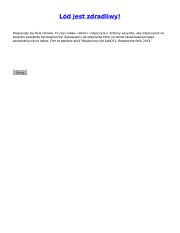 Lód jest zdradliwy! Rozpoczęły się ferie zimowe. To czas zabaw, radości i odpoczynku. Zróbmy wszystko, aby odpoczynek na świeżym powietrzu był bezpieczny! Zapraszamy do obejrzenia filmu na temat zasad bezpiecznego zachowania się na lodzie. Film to pokłosie akcji "Bezpieczny lód – Bezpieczne ferie 2013". Drukuj