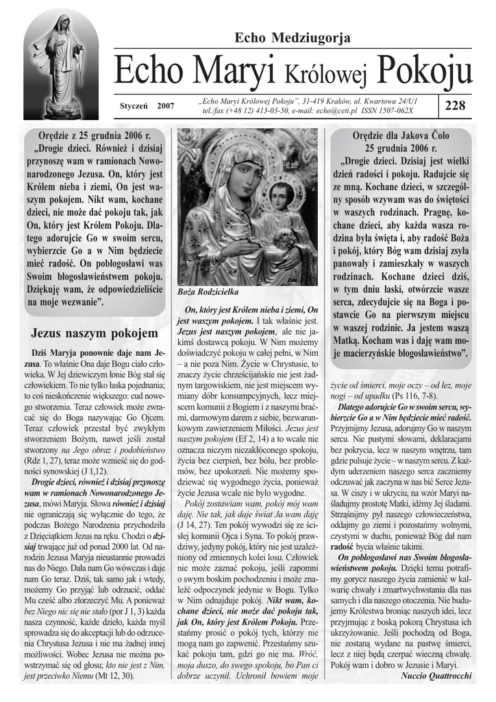 2007 styczeń - Echo Maryi Królowej Pokoju