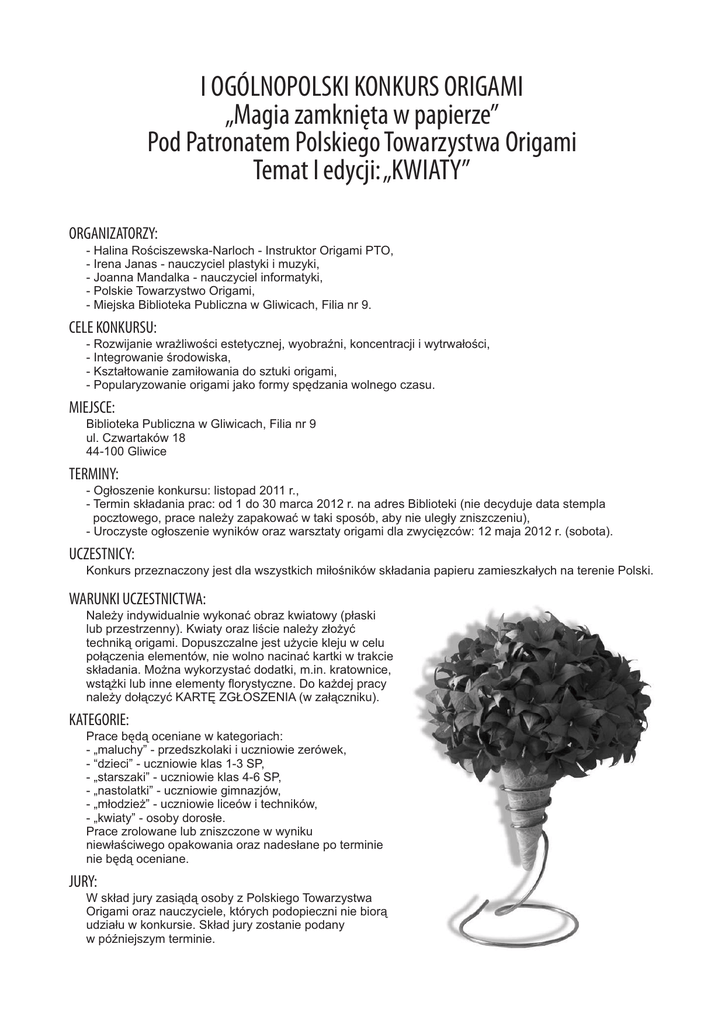 I OGÓLNOPOLSKI KONKURS ORIGAMI „Magia zamknięta w