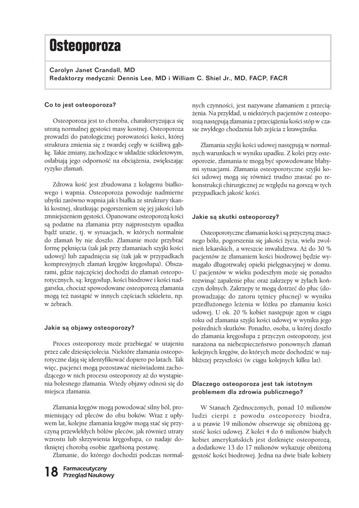 Osteoporoza - Farmaceutyczny Przegląd Naukowy