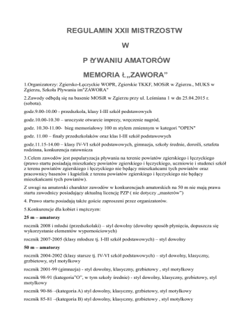 regulamin xxii mistrzostw wp ywaniu amatorów ł memoria „zawora” ł