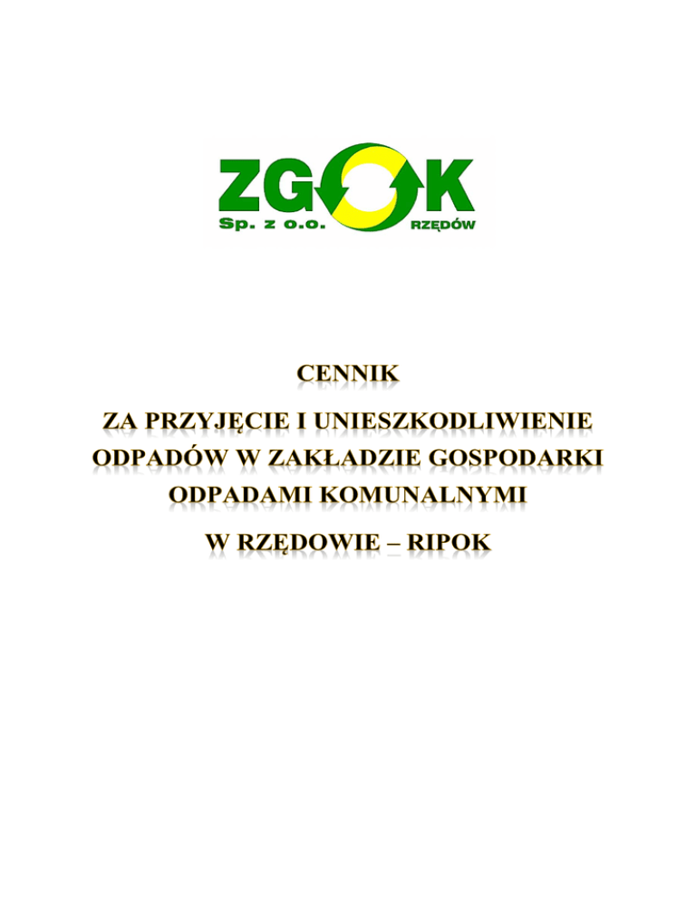 Cennik ZGOK 2015 - Zakład Gospodarki Odpadami Komunalnymi