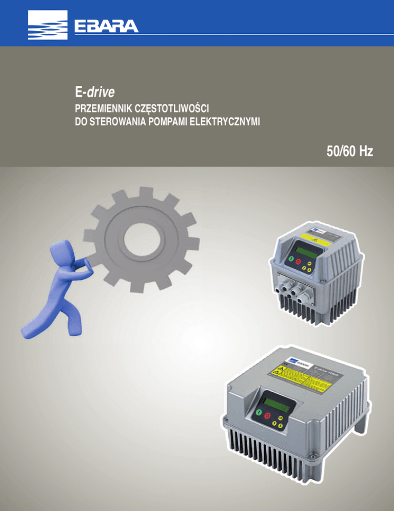 E-drive PRZEMIENNIK CZĘSTOTLIWOŚCI DO STEROWANIA POMPAMI ELEKTRYCZNYMI 50/60 Hz E-DRIVE PRZEMIENNIK CZĘSTOTLIWOŚCI DO STEROWANIA POMPAMI ELEKTRYCZNYMI E-drive jest urządzeniem służącym do sterowania i zabezpieczania systemów pompowych, opartym na zmianie częstotliwości prądu zasilającego pompę. ZASTOSOWANIE • Zaopatrzenie w wodę gospodarstw domowych i zakładów przemysłowych • Nawadnianie • Ogrzewanie i klimatyzacja • Systemy filtrowania i mycia ciśnieniowego ZALETY TECHNICZNE • Oszczędność energii i pieniędzy • Prosta instalacja i niewielkie koszty eksploatacji urządzenia • Duża żywotność • Duża niezawodność E-drive może być podłączone do każdego rodzaju pompy dostępnej na rynku, steruje jej działaniem w taki sposób, że utrzymuje stałą wartość określonej wielkości fizycznej (ciśnienie, przepływ lub temperatura medium), w zależności od warunków użytkowania. Pompa jest więc uruchamiana tylko, gdy jest to konieczne, co pozwala uniknąć niepotrzebnych strat energii i wydłużyć jej żywotność. Urządzenie E-drive pozwala również: • chronić silnik przed przeciążeniem i pracą na sucho • wykonać łagodny rozruch i zatrzymanie (soft start i soft stop), aby zwiększyć żywotność systemu i zmniejszyć pobór mocy szczytowej • dokonać pomiarów pobranego prądu oraz napięcia zasilania • zarejestrować godziny działania i, w zależności od nich, ustawić ewentualne alarmy • sterować jedną lub dwiema pompami o stałej prędkości (DOL: Direct On Line) • połączyć się z innym urządzeniem E-drive, aby ustawić działanie mieszane Aluminiowa konstrukcja nadaje urządzeniu E-drive wyjątkowej solidności i ułatwia chłodzenie. Stopień ochrony IP55 umożliwia zainstalowanie urządzenia E-drive w wilgotnym i zapylonym środowisku. Podświetlany wyświetlacz ciekłokrystaliczny pozwala na używanie go również w miejscach nieoświetlonych, natomiast sygnał akustyczny dostarcza natychmiastowej informacji o alarmie. Your Life, our Quality. Worldwide. 3 E-drive E-DRIVE PRZEMIENNIK CZĘSTOTLIWOŚCI DO STEROWANIA POMPAMI ELEKTRYCZNYMI Urządzenie E-drive może być zainstalowane bezpośrednio na osłonie wentylatora silnika lub zamocowane do ściany. Zestaw do montażu na silniku Wentylator do chłodzenia silnika jest wykorzystywany również do chłodzenia urządzenia E-drive. Zestaw do montażu na silniku W zestawie są dostarczane 4 zaczepy umożliwiające zamocowanie do osłony wentylatora silnika. Zestaw do mocowania na ścianie Wbudowany w żebrowane dno wentylator zapewnia niezależne chłodzenie jednostki. Odpowiedni wspornik ze stali nierdzewnej zapewnia solidne mocowanie do ściany. Korzystanie z urządzenia E-drive jest bardzo proste i intuicyjne. Instalacja jest wykonywana w kilku szybkich czynnościach: • podłączenie urządzenia E-drive do sieci elektrycznej • podłączenie urządzenia E-drive do zacisków zasilających na pompie • podłączenie urządzenia E-drive do czujnika, umieszczonego w dowolnym punkcie instalacji, w którym użytkownik chce utrzymać stałą wartość określonej wielkości fizycznej (ciśnienie, przepływ lub temperatura medium itp.) • programowanie urządzenia E-drive w zależności od typu pompy, instalacji i żądanej charakterystyki Zestaw do mocowania na ścianie Jeśli w instalacji występują duże zmiany zapotrzebowania na wodę, zaleca się podzielenie zespołu pomp na kilka jednostek, dzięki czemu system będzie bardziej wydajny i niezawodny. 1 E-drive + 1 lub 2 DOL Pierwsza metoda podziału polega na równoległym zainstalowaniu jednej pompy z regulacją częstotliwości za pomocą urządzenia E-drive oraz 1 lub 2 pomp DOL podłączonych bezpośrednio do sieci elektrycznej (Direct On Line), których uruchamianie i wyłączanie jest sterowane z poziomu urządzenia E-drive za pośrednictwem styczników. E-drive steruje naprzemiennie pracą obu pomp, aby zapewnić równomierne ich zużycie. Od 1 do 8 E-drive w trybie COMBO Druga metoda podziału (nazywana trybem COMBO) polega na użyciu kilku pomp (do 8) połączonych równolegle, z których każda jest podłączona do urządzenia E-drive. Wydajność i sprawność zespołu pomp są zoptymalizowane. Każde urządzenie E-drive steruje i zabezpiecza pompę, do której jest podłączone, natomiast praca pomp jest rozdzielona pomiędzy poszczególne pompy zestawu w/g rzeczywistych godzin pracy każdej pompy. W przypadku awarii jednej z pomp pozostałe pompy kontynuują pracę. Od 1 do 8 E-drive w trybie COMBO + 1 lub 2 DOL Można także wyposażyć system w kilka pomp pracujących w trybie COMBO oraz w 1-2 pompy pracujące w trybie DOL, które uruchamiają się tylko przy zwiększonym zapotrzebowaniu na wodę. Your Life, our Quality. Worldwide. 4 E-drive E-DRIVE PRZEMIENNIK CZĘSTOTLIWOŚCI DO STEROWANIA POMPAMI ELEKTRYCZNYMI Przy pierwszym uruchomieniu, E-drive rozpoczyna wstępny proces konfiguracji, podczas której zostaje wykonane krótkie, ale kompletne programowanie urządzenia. Ustawiane parametry mogą być następnie zmienione na trzech poziomach dostępu: • Poziom użytkownika. To jedyny poziom niewymagający hasła. Pozwala kontrolować parametry elektryczne, hydrauliczne i stan urządzenia E-drive oraz pompy. • Poziom instalatora. Na tym poziomie wykonywane jest programowanie urządzenia E-drive na podstawie charakterystyk instalacji, w której została zainstalowana pompa. Wymagane jest podanie hasła dostępu. • Poziom zaawansowany. Urządzenie E-drive jest konfigurowane elektrycznie na podstawie parametrów pompy, do której jest podłączone. Wymagane jest dodatkowe hasło dostępu. Kontrola przy stałym ciśnieniu E-drive może sterować prędkością obrotową pompy w taki sposób, aby utrzymać stałe ciśnienie w instalacji mimo wahań rozbioru wody. W tradycyjnych instalacjach z pompami bez regulacji prędkości pojemność hydroforu, która jest ograniczona dopuszczalną lic
