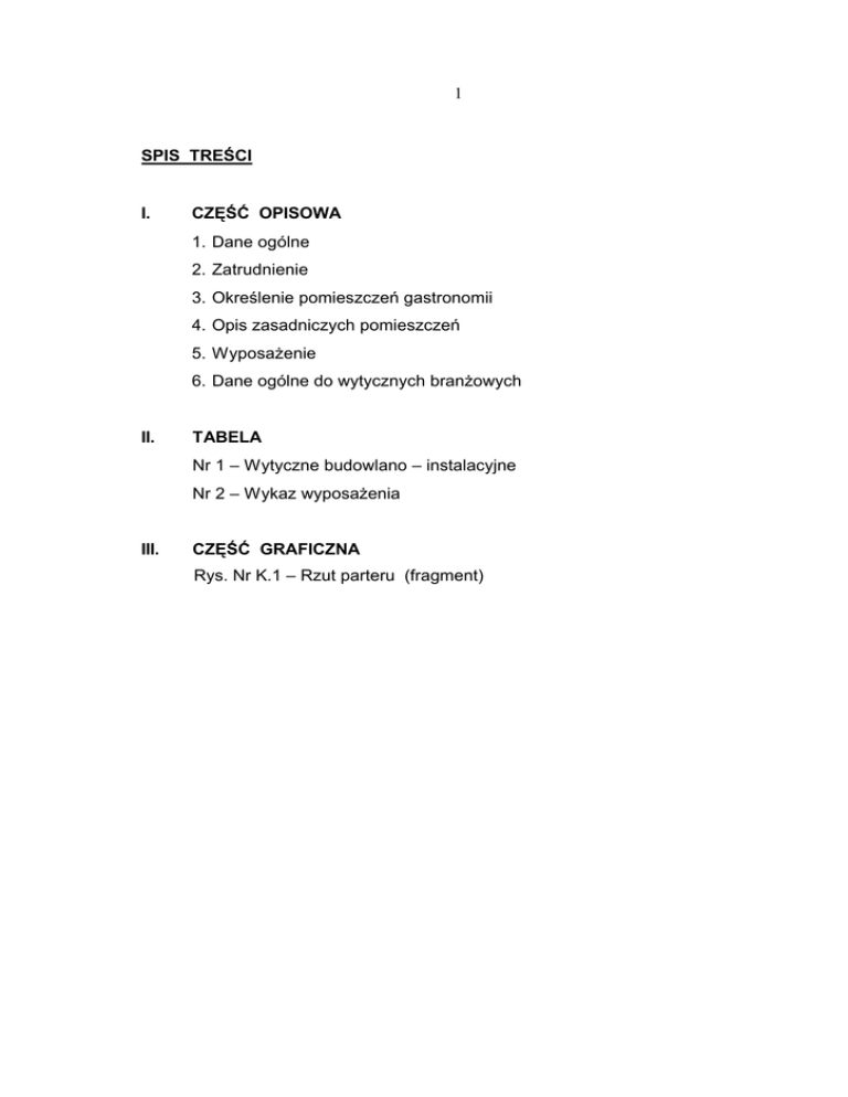 1 SPIS TREŚCI I. CZĘŚĆ OPISOWA 1. Dane ogólne 2. Zatrudnienie