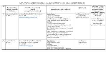 Lista stałych mediatorów dla obszaru właściwości Sądu