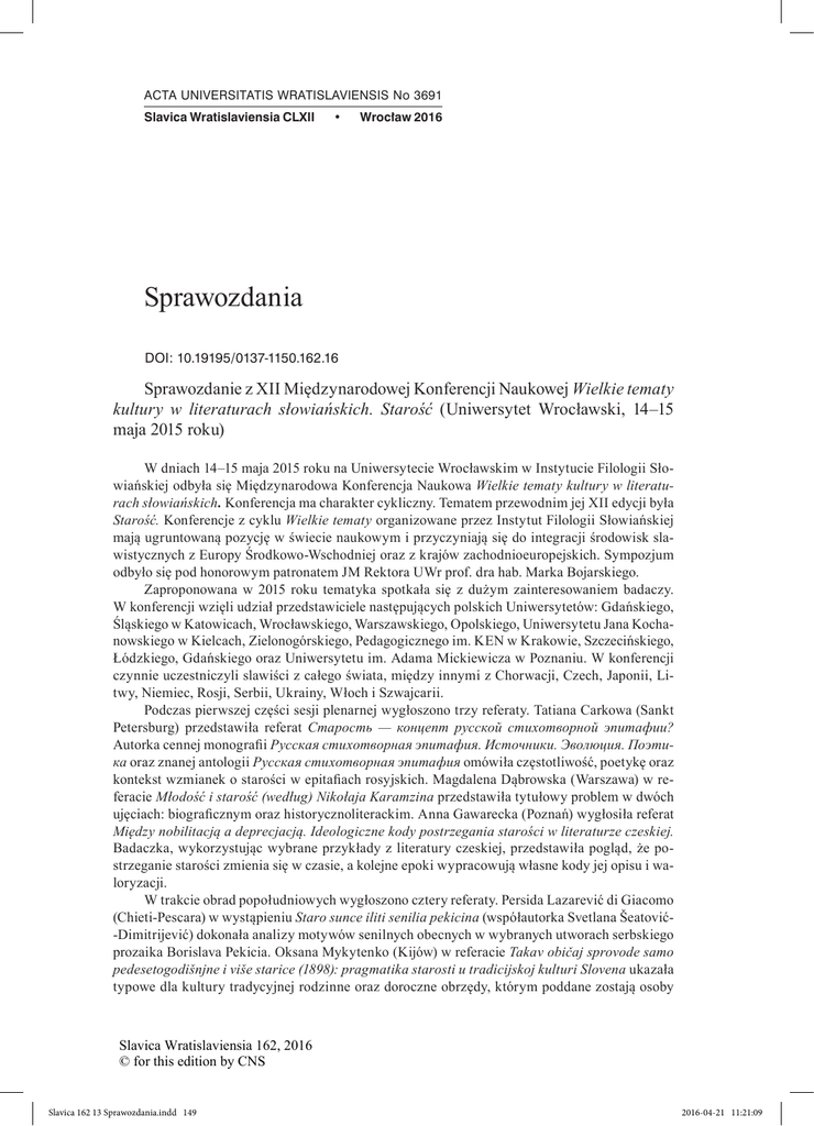 Sprawozdania - Slavica Wratislaviensia