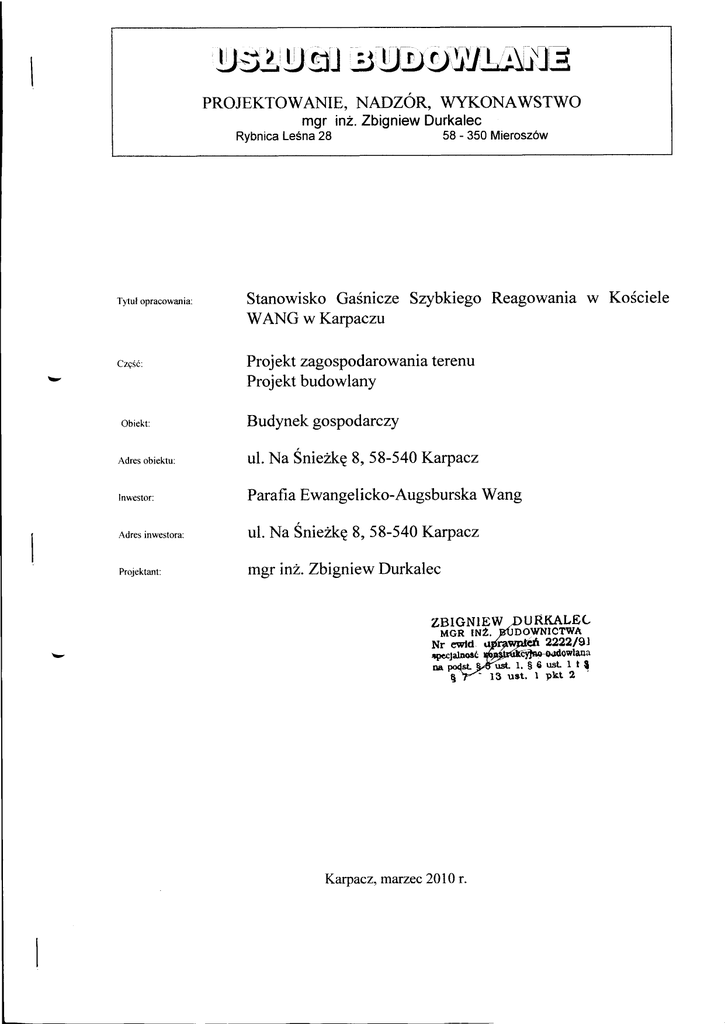 Proj ekt zagospodarowaniatęrenu