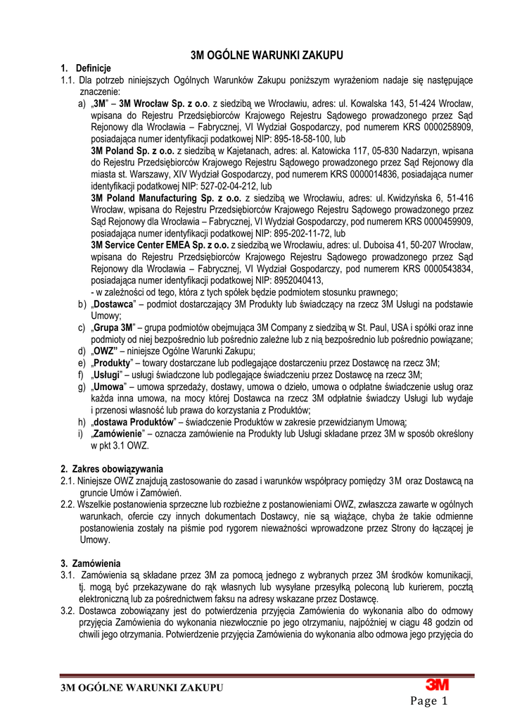 Page 1 3M OGÓLNE WARUNKI ZAKUPU