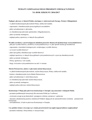 tematy gimnazjalnego projektu edukacyjnego na rok szkolny 2016