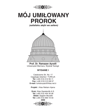 MÓJ UMIŁOWANY PROROK (sallallahu alejhi we sellem) Prof. Dr. Ramazan Ayvalli Uniwersytet Marmara, Wydział Teologii WYDANIE I Catalcesme Sk. No: 17 Cagaloglu-Istanbul / TURCJA Tel: (+90 212) 512 95 11 Fax: (+90 212) 513 68 57 E-mail: [email protected] Projekt : Ihlas Reklam Ajans› Druk: Ihlas Gazetecilik A.S. Tel: (+90 212) 454 35 06 Skład: Saglam Mucellit Tel: (+90 212) 693 19 33 2009 SPIS TREŚCI Słowo wstępne . . . . . . . . . . . . . . . . . . . . . . . . . . . . . . . . . . . . . . . . . . . . . . . . . . . . . . . . 6 BŁOGOSŁAWIONY NUR SZLACHETNEGO PROROKA . . . . . . . . . . . . . . . . . . . . . . . . . . 9 Stworzenie Błogosławionego Nuru . . . . . . . . . . . . . . . . . . . . . . . . . . . . . . . . . . . . . . . . 10 Przechodzenie Nuru po czystych czołach . . . . . . . . . . . . . . . . . . . . . . . . . . . . . . . . . . 11 Dziadek Muhammeda (alejhisselam) Hazrat Abdulmuttalib . . . . . . . . . . . . . . . . . . . . . 13 Zamiar złożenia ofiary z Abdullaha . . . . . . . . . . . . . . . . . . . . . . . . . . . . . . . . . . . . . . . 15 Ojciec Muhammeda (alejhisselam), Hazrat Abdullah . . . . . . . . . . . . . . . . . . . . . . . . . . 16 Przejście Nuru na Amine, matkę Proroka . . . . . . . . . . . . . . . . . . . . . . . . . . . . . . . . . . 18 Wydarzenie ze słoniem . . . . . . . . . . . . . . . . . . . . . . . . . . . . . . . . . . . . . . . . . . . . . . . . . 18 Radosne nowiny . . . . . . . . . . . . . . . . . . . . . . . . . . . . . . . . . . . . . . . . . . . . . . . . . . . . . . 19 „Okres ignorancji” przed islamem . . . . . . . . . . . . . . . . . . . . . . . . . . . . . . . . . . . . . . . . . 21 UHONOROWANIE ŚWIATA (NARODZINY) . . . . . . . . . . . . . . . . . . . . . . . . . . . . . . . . . . . . 25 Zdarzenia widziane w nocy Jego narodzin . . . . . . . . . . . . . . . . . . . . . . . . . . . . . . . . . . 28 Noc Mewlid . . . . . . . . . . . . . . . . . . . . . . . . . . . . . . . . . . . . . . . . . . . . . . . . . . . . . . . . . . 29 Mamka Muhammeda (alejhisselam) . . . . . . . . . . . . . . . . . . . . . . . . . . . . . . . . . . . . . . . 30 Rozcięcie Błogosławionej Klatki Piersiowej. . . . . . . . . . . . . . . . . . . . . . . . . . . . . . . . . . 33 Śmierć matki, Hazrat Amine . . . . . . . . . . . . . . . . . . . . . . . . . . . . . . . . . . . . . . . . . . . . . 35 Przy dziadku . . . . . . . . . . . . . . . . . . . . . . . . . . . . . . . . . . . . . . . . . . . . . . . . . . . . . . . . . 35 Zakonnik z Nedżranu. . . . . . . . . . . . . . . . . . . . . . . . . . . . . . . . . . . . . . . . . . . . . . . . . . . 36 Śmierć dziadka . . . . . . . . . . . . . . . . . . . . . . . . . . . . . . . . . . . . . . . . . . . . . . . . . . . . . . . 37 Pod opieką Ebu Taliba. . . . . . . . . . . . . . . . . . . . . . . . . . . . . . . . . . . . . . . . . . . . . . . . . . 38 Zakonnik Bahira. . . . . . . . . . . . . . . . . . . . . . . . . . . . . . . . . . . . . . . . . . . . . . . . . . . . . . . 38 MŁODOŚĆ I MAŁŻEŃSTWO . . . . . . . . . . . . . . . . . . . . . . . . . . . . . . . . . . . . . . . . . . . . . . . 41 Zajmowanie się handlem. . . . . . . . . . . . . . . . . . . . . . . . . . . . . . . . . . . . . . . . . . . . . . . . 42 Małżeństwo z Hazrat Hadidże . . . . . . . . . . . . . . . . . . . . . . . . . . . . . . . . . . . . . . . . . . . . 46 Zejd bin Harise . . . . . . . . . . . . . . . . . . . . . . . . . . . . . . . . . . . . . . . . . . . . . . . . . . . . . . . 47 Stanowisko sędziego w Kaabie . . . . . . . . . . . . . . . . . . . . . . . . . . . . . . . . . . . . . . . . . . . 49 PROROCTWO I ZAPROSZENIE . . . . . . . . . . . . . . . . . . . . . . . . . . . . . . . . . . . . . . . . . . . . 51 Pierwsze objawienie . . . . . . . . . . . . . . . . . . . . . . . . . . . . . . . . . . . . . . . . . . . . . . . . . . . 52 Przyjście nakazu głoszenia wiary . . . . . . . . . . . . . . . . . . . . . . . . . . . . . . . . . . . . . . . . . 54 Pierwsi muzułmanie. . . . . . . . . . . . . . . . . . . . . . . . . . . . . . . . . . . . . . . . . . . . . . . . . . . . 55 Zaproszenie bliskiej rodziny . . . . . . . . . . . . . . . . . . . . . . . . . . . . . . . . . . . . . . . . . . . . . 59 Jeśli daliby Mi nawet do prawej ręki słońce! . . . . . . . . . . . . . . . . . . . . . . . . . . . . . . . . . 62 Ucisk, tortury i tyrania . . . . . . . . . . . . . . . . . . . . . . . . . . . . . . . . . . . . . . . . . . . . . . . . . . 64 Tortury zadawane Towarzyszom Szlachetnego Proroka. . . . . . . . . . . . . . . . . . . . . . . . 71 Tortury aż do utraty przytomności . . . . . . . . . . . . . . . . . . . . . . . . . . . . . . . . . . . . . . . . . 75 Dom Hazrat Erkama . . . . . . . . . . . . . . . . . . . . . . . . . . . . . . . . . . . . . . . . . . . . . . . . . . . 76 Pierwszy szehid . . . . . . . . . . . . . . . . . . . . . . . . . . . . . . . . . . . . . . . . . . . . . . . . . . . . . . . 77 Przyjęcie islamu przez Ebu Zerr-il-Gifariego . . . . . . . . . . . . . . . . . . . . . . . . . . . . . . . . . 78 Jawne recytowanie Świętego Koranu w Kaabie . . . . . . . . . . . . . . . . . . . . . . . . . . . . . . 81 Przyjęcie islamu przez Tufejla bin Amra . . . . . . . . . . . . . . . . . . . . . . . . . . . . . . . . . . . . 81 Zapraszanie na jarmarkach . . . . . . . . . . . . . . . . . . . . . . . . . . . . . . . . . . . . . . . . . . . . . . 84 Słuchanie Świętego Koranu przez pogan . . . . . . . . . . . . . . . . . . . . . . . . . . . . . . . . . . . 86 Przyjęcie islamu przez Halida bin Sa ʻida . . . . . . . . . . . . . . . . . . . . . . . . . . . . . . . . . . . 90 Musʼab bin Umejr zostaje muzułmaninem. . . . . . . . . . . . . . . . . . . . . . . . . . . . . . . . . . . 92 EMIGRACJA DO ABISYNII. . . . . . . . . . . . . . . . . . . . . . . . . . . . . . . . . . . . . . . . . . . . . . . . . 93 Pierwsza hidżra . . . . . . . . . . . . . . . . . . . . . . . . . . . . . . . . . . . . . . . . . . . . . . . . . . . . . . . 93
