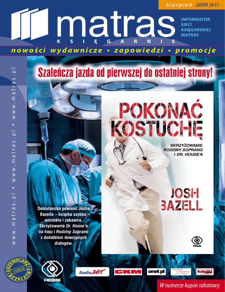S i e r p i e ń 2009 (61) informator sieci księgarskiej matras k s i ę g a r n i e w w w. m a t r a s . p l • w w w. m a t r a s . p l • w w w. m a t r a s . p l n o w o śc i w y d a w n i c z e • z a p o w i e d z i • p r o m o c j e W numerze kupon rabatowy Sierpień 2009 TOP MATRASA • LIPIEC 2009 1. Kryształowy anioł 6. Dom nad rozlewiskiem 2. Gosposia prawie od wszystkiego 7. Przed świtem 3. Księżyc w nowiu 8. Zwycięzca jest sam 4. Zmierzch 9. Wzgórza Toskanii 5. Zaćmienie 10. Nie potrafię schudnąć Katarzyna Grochola WL TOP Matrasa Monika Szwaja Sol Stephanie Meyer Dolnośląskie Stephanie Meyer Dolnośląskie Stephanie Meyer Dolnośląśkie Małgorzata Kalicińska Zysk i S-ka Stephanie Meyer Dolnośląskie Paulo Coelho Drzewo Babel Ferenc Mate Prószyński i S-ka Pierre Dukan Otwarte 11. Miłość nad rozlewiskiem Małgorzata Kalicińska, Zysk i S-ka 16. Biała gorączka Jacek Hugo-Bader, Czarne 12. Powroty nad rozlewiskiem Małgorzata Kalicińska, Zysk i S-ka 17. Pamiętnik IV Rzepy Krzysztof Daukszewicz, Bellona 13. Winnica w Toskanii Ferenc Mate, Prószyński i S-ka 18. Moja Toskania Vito Casetti i Agata Jakóbczak, Pascal 14. Anioły i demony Dan Brown, Albatros/Sonia Draga 19. Klub niewiernych żon Carrie Karasyov, Remi 15. Bikini Janusz L. Wiśniewski, Świat Książki 20. Nazywam się Zacharski. Marian Zacharski Marian Zacharski, Zysk i S-ka www.matras.pl • www.matras.pl • www.matras.pl • www.matras.pl • www.matras.pl nowości wydawnicze www.matras.pl • www.matras.pl • www.matras.pl • www.matras.pl • www.matras.pl Sierpień 2009 Sylvia Browne, Lindsay Harrison nowości wydawnicze nieziemskie dzieci W „Nieziemskich dzieciach” światowej sławy autorka porusza nowy, konfrontacyjny temat dotyczący zdolności metafizycznych u dzieci. Przedstawia niesamowite i zaskakujące opowieści, których bohaterami są dzieci w różnym wieku. W świecie dziecka występują niezwykłe rzeczy – wyimaginowane zjawiska, zmyśleni przyjaciele, prostoduszność oraz wyraźne rozgraniczenie dobra i zła. Zdaniem autorki wszystkiej dzieci posiadają niespotykane talenty i uzdolnienia, lecz społeczeństwo nie traktuje tych cech w sposób właściwy, podziwiając jedne, a potępiając inne. Wydawnictwo studio eMka Jean Van Hamme Gavin Newsham go golf. trening z instruktorem na filmie DVD Largo Winch. grupa W tom pierwszy Podręcznik do nauki gry w golfa z 30-minutowym instruktażowym filmem DVD w polskiej wersji językowej. Książka prezentuje naukę gry w golfa krok po kroku. Zawiera wskazówki, jak doskonalić swoje umiejętności i fotografie objaśniające zasady gry. Dołączony film DVD szczegółowo demonstruje technikę gry w golfa. Seria GO uczy także innych sportów, dotąd ukazały się: Żagle, Tenis, Narty oraz Snowboard. Wielki międzynarodowy biznes, ze wszystkimi czyhającymi w tym świecie pułapkami, sekretnymi machinacjami, twardymi negocjacjami, szpiegostwem przemysłowym – to wszystko mogłoby stanowić doskonałe tło dla toczącej się akcji. Tak, to było coś nowego. Pomyślałem o potężnym kartelu, oplatającym swymi mackami cały świat. Idąc za ciosem, dlaczego na jego czele nie miałby stać jeden tylko człowiek? Człowiek młody, pełen uroku, lubiący przygody i po prostu uczciwy, zupełnie inny niż funkcjonujący w świecie wielkiej finansjery, pozbawieni skrupułów baronowie biznesu... Wydawnictwo global PWn Wydawnictwo studio eMka Helen Nicholson, David Nicolle Jan M. Ciechanowski Powstanie Warszawskie rycerze boga Zakon templariuszy i saraceni Praca ta jest próbą ustalenia: kiedy, jak i dlaczego autorzy Powstania zdecydowali się opanować Warszawę polskim wysiłkiem, przynajmniej na dwanaście godzin przed wejściem do niej Rosjan, chociaż wiedzieli, że stołecznym oddziałom Armii Krajowej brakowało potrzebnej ku temu broni i amunicji. Chodziło też o ustalanie, w jakim stopniu polityczne, ideologiczne i dyplomatyczne założenia i pociągnięcia władz RP na uchodźstwie i w kraju przyczyniły się do wybuchu Powstania. Dzieje krain podbitych w XI wieku przez Europejczyków na Bliskim Wschodzie są jak baśnie z tysiąca i jednej nocy. Bajka dobiega jednak końca po kilkudziesięciu latach świetności, gdy chrześcijańskie królestwa, księstwa, hrabstwa i baronie zaczynają się kruszyć; agonia potrwa do początków XIV wieku. Czy mogły przetrwać? Książka nawet nie stawia takiego pytania. Po prostu bada okoliczności i uwarunkowania, w których doszło do przełomu – bitwy pod Hittin w 1187 roku, gdy Saladyn po raz pierwszy zadał druzgocącą klęskę intruzom z Europy i zapoczątkował stopniowy upadek państw krzyżowych. Wydawnictwo Bellona Wydawnictwo Bellona Rupert Butler Dywizja Waffen ss „Wiking” W obliczu ostrych niedoborów siły żywej dowództwo SS zaczęło poszukiwać ochotników, skłonnych do wstąpienia w szeregi oddziałów bojowych (Waffen) SS. Nabór prowadzono na obszarze okupowanej przez Niemców Europy. Zwerbowani w jego wyniku rekruci utworzyli dywizję Wiking, której nazwa miała uosabiać ideał nordyckiej czystości rasowej. Książka jest monografią Dywizji Waffen SS WIKING. Wydawnictwo Bellona Józef Dyskant Zatoka Świeża 1463 Bitwa morska w Zatoce Świeżej rozegrała się w czasie wojny trzynastoletniej między zakonem krzyżackim a Rzeczpospolitą. Wprawdzie sama bitwa nie wniosła wiele do rozwoju morskiej sztuki wojennej, jednakże sposób jej taktycznego rozegrania,właściwe wykorzystanie warunków atmosferycznych i nawigacyjnych oraz dobre wyszkolenie i wysokie morale załóg okrętów gdańskich i elbląskich przyniosły w efekcie zwycięstwo słabszej liczebnie flocie polskiej. Wydawnictwo Bellona 4 www.matras.pl • www.matras.pl • www.matras.pl • www.matras.pl • www.matras.pl „Piszę wtedy, gdy mam potrzebę pisania” Jest pan świetnym obserwatorem rzeczywistości, zarówno polskich elit politycznych jak i zwykłych ludzi, którym