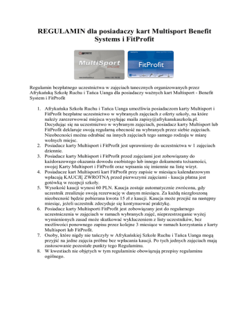 REGULAMIN dla posiadaczy kart Multisport Benefit Systems i FitProfit