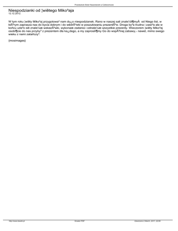 W tym roku ¦wiêty Miko³aj przygotowa³ nam du¿o niespodzianek. Rano w naszej sali znale¼li¶my od Niego list, w