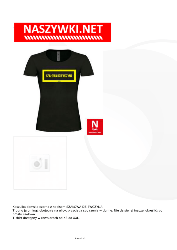 Koszulka damska czarna z napisem SZAŁOWA DZIEWCZYNA. Trudno ją ominąć obojętnie na ulicy, przyciąga spojrzenia w tłumie. Nie da się jej inaczej określić: po prostu szałowa. T-shirt dostępny w rozmiarach od XS do XXL. Strona 1 z 2 Strona 2 z 2
