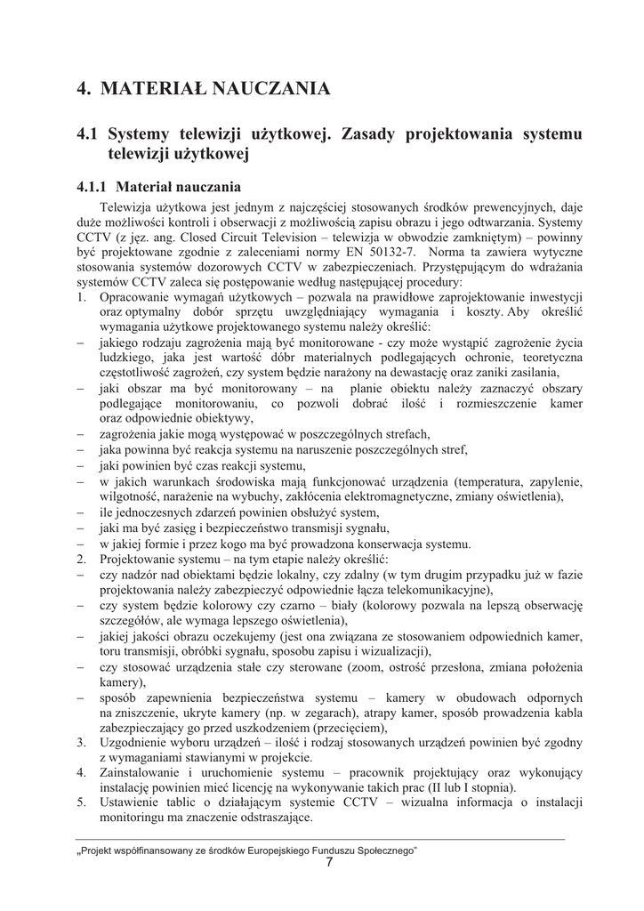 4.1 Systemy telewizji u!ytkowej. Zasady projektowania systemu