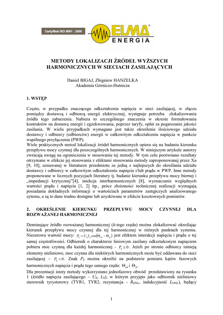 Metody lokalizacji źródeł wyższych harmonicznych w