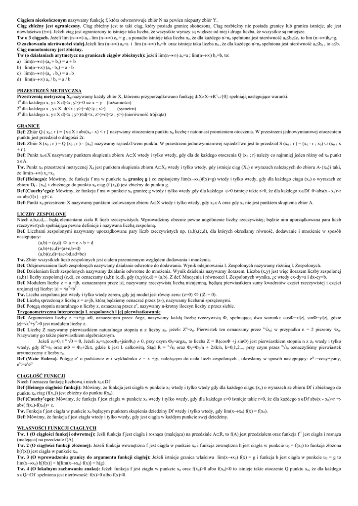 WŁASNOŚCI FUNKCJI CIĄGŁYCH