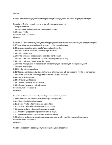 Wstęp Część I. Taksonomia ryzyka oraz strategie zarządzania
