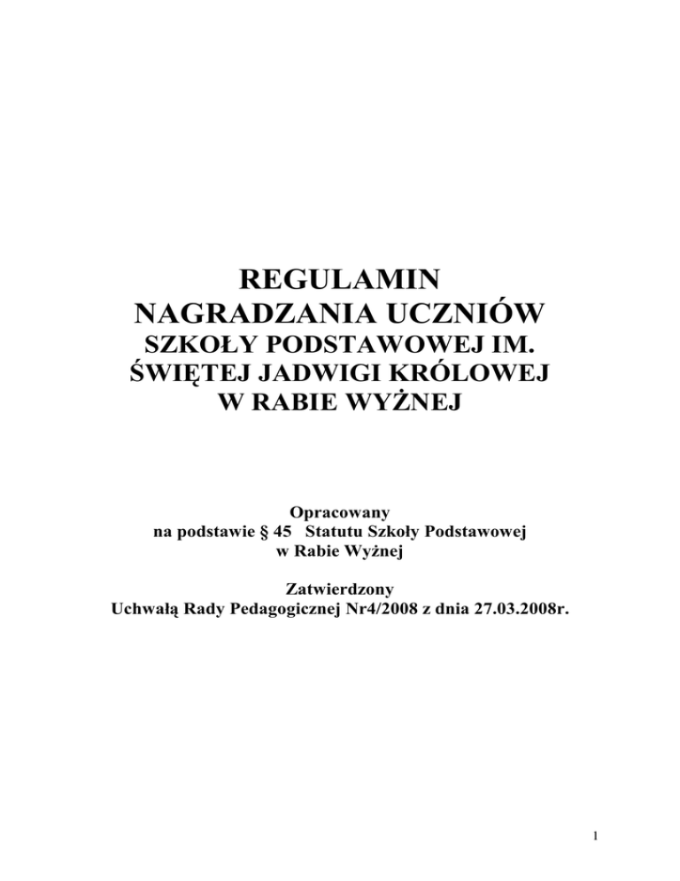 regulamin nagradzania - Szkoła Podstawowa im. Świętej Jadwigi
