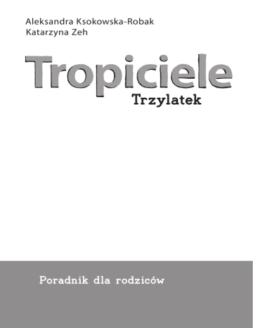 Aleksandra Ksokowska-Robak Katarzyna Zeh Trzylatek Poradnik dla rodziców © Copyright by Wydawnictwa Szkolne i Pedagogiczne sp. z o.o. Warszawa 2014 Wydanie I (2014) ISBN 978-83-02-14327-4 Opracowanie merytoryczne i redakcyjne: Joanna Dziejowska (redaktor cyklu, redaktor merytoryczny), Karolina Karamuz (współpraca redakcyjna) Redakcja techniczna: Monika Rudnik-Kulikowska Projekt okładki: Wojciech Chełchowski Projekt graficzny: Wojciech Chełchowski Skład i łamanie: Studio Diament Wydawnictwa Szkolne i Pedagogiczne spółka z ograniczoną odpowiedzialnością 00-807 Warszawa, Aleje Jerozolimskie 96 Tel.: 22 576 25 00 Infolinia: 801 220 555 www.wsip.pl Druk i oprawa: DROGOWIEC-PL, SP. z o.o., Kielce Publikacja, którą nabyłeś, jest dziełem twórcy i wydawcy. Prosimy, abyś przestrzegał praw, jakie im przysługują. Jej zawartość możesz udostępnić nieodpłatnie osobom bliskim lub osobiście znanym. Ale nie publikuj jej w internecie. Jeśli cytujesz jej fragmenty, nie zmieniaj ich treści i koniecznie zaznacz, czyje to dzieło. A kopiując jej część, rób to jedynie na użytek osobisty. Szanujmy cudzą własność i prawo. Więcej na www.legalnakultura.pl Polska Izba Książki Spis treści Po co dziecku przedszkole? ................................................................................................. 4 Jak wesprzeć dziecko w adaptacji przedszkolnej................................................................ 6 Poranne rozstania ................................................................................................................. 8 Samodzielność – inwestycja w przyszłość ......................................................................... 10 Trzylatek w toalecie ............................................................................................................... 12 Inicjatywa ............................................................................................................................... 14 Wielkie oczy Pana Stracha, czyli czego boi się trzylatek .................................................... 16 Zabawy trzylatka. W co się bawić z trzylatkiem? ................................................................ 18 Współpraca z nauczycielką ................................................................................................. 20 Zmiany w życiu malucha – w rodzinnym kręgu ................................................................. 22 Po co dziecku przedszkole? Gdybyśmy zapytali pół wieku temu, dlaczego dzieci chodzą do przedszkola, uzyskalibyśmy bardzo prostą odpowiedź: bo tam mają opiekę, kiedy rodzice nie mogą się nimi zająć, gdy idą do pracy. Dziś także wielu rodziców głównie z tego powodu posyła pociechę do przedszkola, ale jasne stało się, że dziecko otrzymuje tam o wiele więcej niż tylko zabezpieczenie opieki na wiele godzin. Rozszerzanie granic świata Wraz z pójściem do przedszkola świat dziecka (i jego rodziny) ulega niezwykłemu rozszerzeniu. Do tej pory mieszkanie i pobliski plac zabaw były często „całym światem” dziecka. Teraz maluch oswaja kolejne miejsca, zakątki, plenery. Z dnia na dzień w jego życiu pojawia się coraz więcej ważnych osób. Codziennie przybywa nowych spraw. Do niektórych rodzice mają duży dostęp, do innych – znikomy. Malec nawiązuje przyjaźnie, ma swoje tajemnice, a jego życie nie może być już tak bardzo „podglądane” przez dorosłych. Dziecko, po dobrym poradzeniu sobie z wrześniowymi rozstaniami, zyskuje większą niezależność. I nierzadko – drugie po domu – najważniejsze miejsce na świecie. Wyprawa bez mamy i taty Koleżanki i koledzy W przedszkolu jest coś (a właściwie KTOŚ), o co trudno w warunkach domowych. Są inne dzieci, koleżanki i koledzy, czyli grupa rówieśnicza. I w związku z tym pojawia się ogrom możliwości. Można się pobawić w szpital, pobiegać „w peletonie”, pobawić w to samo, albo właśnie w coś zupełnie innego (i opowiedzieć o tym wszystkim). Tu tętni życie społeczne. Bez innych dzieci nie jest możliwe opanowywanie wielu umiejętności, np. czekania w kręgu na swoją kolej czy dogadywania się, w co będziemy się bawić. Samodzielność Przedszkole rozwija samodzielność dziecka. Dzieje się to zupełnie naturalnie. Oczywiście, każdy maluch może liczyć na wsparcie nauczycielki lub opiekunki, ale przekonuje się, że czasami musi trochę poczekać, bo pani jest zajęta Adasiem. Często też słyszy zachętę 4 © by Wydawnictwa Szkolne i Pedagogiczne sp. z o.o. Warszawa 2014 Przedszkole to miejsce, gdzie często maluch po raz pierwszy zostaje poza domem bez rodziców. To tutaj uczy się, jak obdarzać zaufaniem osoby spoza rodzinnego kręgu. Nauczycielki wiedzą, jak sprawić, by maluszek poczuł się pewniej. Potrafią także ocenić, czy dziecko ma tyle zasobów, by zmierzyć się z tym trudnym zadaniem. Przytulą i zainteresują układanką. Podpowiedzą rodzicowi, co może zrobić, by maluchowi łatwiej było się pożegnać. Są fachowcami. A maluszek otrzymuje dobre wsparcie w okresie adaptacji. do podjęcia próby samodzielnego ubierania się, a rozglądając się wkoło widzi, że inni sięgają po swoje buty. Więc po co czekać? Zaczyna się ubierać samo. Samodzielność to nie tylko radzenie sobie w szatni, toalecie czy podczas posiłków. To także zagospodarowanie sobie czasu wolnego i dogadanie się z kolegą w cztery oczy. Twórcze życie Wystarczy spojrzeć na wystawy przedszkolnych prac lub zajrzeć do teczki z wytworami malucha, by przekonać się, że w przedszkolu twórczość objawia się na wiele sposobów. Program zajęć obejmuje szeroko rozumiane prace plastyczne, gdzie dziecko poznaje różne materiały i formy, uczy się korzystania z różnych narzędzi (np. nożyczek z ząbkami) i ma możliwość zrealizowania własnych projektów. Może podpatrzeć, co robi sąsiad przy stoliku i zainspirować się – trz