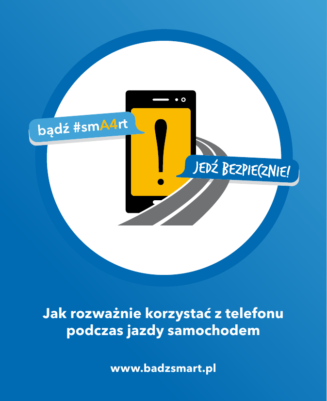 Jak rozważnie korzystać z telefonu podczas jazdy samochodem www.badzsmart.pl Kierowco, czy zdarzyło Ci się rozmawiać Kierowco! przez telefon prowadząc samochód, pisać lub odczytywać SMS-y, czy używać nawigacji w telefonie? 3 na 4 posiadaczy smartfona korzysta z niego prowadząc samochód. Niewykluczone, że jesteś jednym z nich! Dowiedz się, jak rozważnie używać Nie prowadź rozmów telefonicznych podczas jazdy trzymając słuchawkę w ręku lub, jeśli posiadasz zestaw głośnomówiący czy słuchawkowy, staraj się ograniczyć je do minimum. telefonu podczas jazdy, w sposób zgodny z Kodeksem Drogowym. Pasażerze, Twoje bezpieczeństwo zależy nie tylko od zachowania kierowcy. Sprawdź, co możesz zrobić, aby użytkowanie telefonu podczas jazdy Kiedy korzystasz z nawigacji w telefonie, zwiększ głośność nawigatora, tak aby dobrze słyszeć jego komendy. Ograniczysz w ten sposób konieczność częstego spoglądania na ekran. było dla Was bezpieczne. Nie surfuj po internecie podczas jazdy nawet, jeśli pilnie potrzebujesz sprawdzić dokładny adres miejsca, do którego właśnie jedziesz. Zatrzymaj się w dozwolonym, bezpiecznym miejscu, by skorzystać z telefonu. Korzystając z zestawu słuchawkowego, nie zakładaj słuchawek na oboje uszu, tylko na jedno, abyś mógł słyszeć, co dzieje się na drodze, w szczególności pojazdy jadące na sygnale. Przerwij rozmowę telefoniczną lub zakończ, gdy na drodze dzieje się coś, co wymaga większej uwagi. Jeżeli wiesz, że rozmowa telefoniczna, którą chcesz wykonać podczas jazdy będzie miała emocjonalny przebieg, zrezygnuj z niej. Prowadzenie pojazdu wymaga przede wszystkim skupienia. Jeżeli wybierasz się w dłuższą podróż, to jeszcze zanim wyruszysz podłącz ładowarkę do telefonu. Nie będziesz musiał jej nerwowo szukać, gdy poziom energii na telefonie spadnie. Nigdy nie pisz SMS-ów w trakcie jazdy. Kilka sekund niepatrzenia na drogę może spowodować groźny wypadek. Zamiast odczytywać SMS-y, włącz w telefonie funkcję ich odczytywania na głos. Podczas jazdy samochodem nie rób sobie zdjęć telefonem. „Selfie” może i są modne, ale robienie ich podczas jazdy samochodem jest bardzo niebezpieczne. Jeśli wiesz, że chwilowo będziesz musiał skorzystać z telefonu w samochodzie np. z nawigacji, trzymaj go w specjalnie przeznaczonym do tego uchwycie, umiejscowionym w sąsiedztwie zegarów pokładowych. Taka lokalizacja telefonu pomoże Ci utrzymać kontakt wzrokowy z jezdnią. Najprostszy, uniwersalny uchwyt kosztuje kilkadziesiąt złotych. Lubisz czytać książki lub gazety? Ściągnij audiobooka na smartfona i ciesz się przyjemnością ze słuchania ulubionych pisarzy i dziennikarzy. Słuchanie ciekawego audiobooka jest pomocne w zwalczaniu senności za kierownicą. Jeśli musisz skorzystać z telefonu, zatrzymaj samochód w bezpiecznym miejscu lub poproś pasażera o odebranie czy wykonanie rozmowy. Korzystaj z nowoczesnej technologii bardzo rozważnie. Roztropnie używaj wyłącznie tych rozwiązań, które mogą poprawić Twoje bezpieczeństwo na drodze czy komfort podróżowania, a nie Cię dekoncentrować. Pasażerze! Pamiętaj, że od zachowania kierowcy zależy również Twoje bezpieczeństwo. Zadbaj, by kierowca ograniczył kontakt z telefonem podczas jazdy. Kiedy dzwoni telefon, a kierowca nie posiada zestawu słuchawkowego lub głośnomówiącego, poproś go, aby nie odbierał telefonu lub zapytaj czy możesz odebrać w jego imieniu. Staraj się nie oglądać filmów na smartfonie siedząc na przednim fotelu. Możesz w ten sposób rozpraszać kierowcę, wzbudzać jego ciekawość, przez co będzie chciał spoglądać na ekran Twojego telefonu. Jeśli potrzebujecie skorzystać z nawigacji podczas jazdy, wyręcz kierowcę i wpisuj do niej potrzebne adresy oraz instruuj kierowcę, zgodnie z nawigacją, którędy powinien jechać. Dzięki temu, kierowca będzie mógł skoncentrować się na drodze. Nigdy nie trzymaj telefonu przy uchu kierowcy. Kiedy tak się dzieje, kierowca skupia uwagę nie tylko na rozmowie, ale również na utrzymaniu głowy blisko telefonu, który trzymasz. Kiedy surfujesz po internecie w trakcie jazdy, nie pokazuj kierowcy treści, które właśnie zobaczyłeś na ekranie telefonu nawet, jeśli mogłyby być dla niego interesujące. Nie rozpraszaj uwagi kierowcy robieniem zdjęć w trakcie jazdy. Lampa błyskowa może go oślepić i spowodować zagrożenie na drodze. Jeśli nie możesz odmówić sobie rozrywki podczas jazdy, to zamiast przeglądać strony internetowe z zabawnymi zdjęciami czy filmikami, wybieraj te z tekstami. Lepiej czytać współpasażerom, niż wyświetlać obrazy na ekranie urządzenia. Wyręcz kierowcę podczas jazdy i, jeśli to konieczne, sprawdzaj za niego pocztę elektroniczną czy inne ważne w danym momencie aplikacje. Jeżeli lubisz grać w gry na smartfonie, staraj się wybierać te, które nie wymagają Twoich gwałtownych ruchów. Siedząc na przednim fotelu możesz niechcący trącić kierowcę i rozproszyć jego uwagę. Pamiętaj! Jeśli podejrzewasz, że osoba, do której chcesz się dodzwonić może w tej chwili prowadzić samochód, zadzwoń później. Będziecie mieli większy komfort rozmawiania. Kiedy dodzwonisz się do osoby, która prowadzi samochód, zapytaj czy korzysta z zestawu słuchawkowego lub głośnomówiącego. Nawet jeśli tak, staraj się zanadto nie absorbować kierowcy, by nie obniżać jego koncentracji. Jeśli kierowca trzyma telefon rozmawiając z Tobą, zaproponuj by oddzwonił, gdy zatrzyma pojazd w bezpiecznym miejscu. W nowoczesnych smartfonach wiele funkcji można obsługiwać za pomocą głosu. Jeżeli jesteś ciekawy, jakie funkcje obsługuje Twój telefon przeczytaj instrukcję obsługi. Jesteś właścicielem firmy, w której pracownicy wykorzystują samochody jako narzędzie swojej pracy? Wprowadź zasady użytkowania pojazdów służbowych, z odpowiednimi zapisami dotyczącymi bezpie