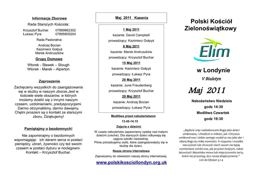 Maj 2011 - Polski Kościół Chrześcijański Elim Springs w Londynie