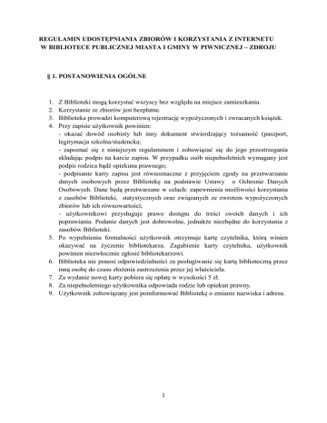 regulamin udostępniania zbiorów i korzystania z internetu w