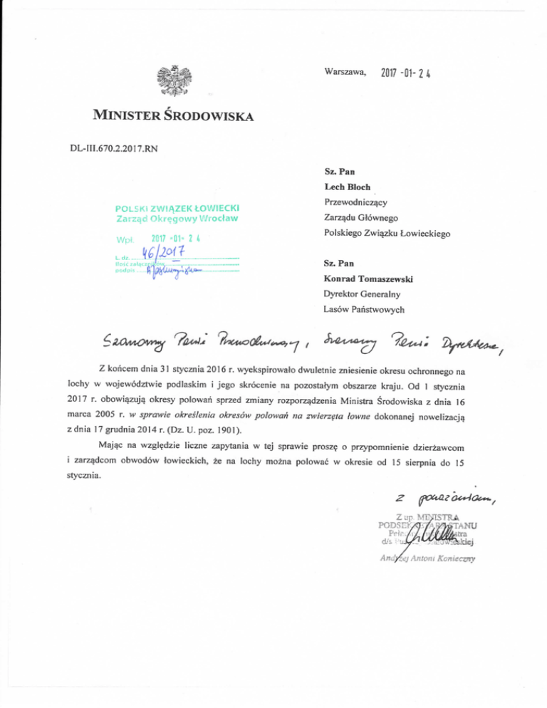 i zarządcom obwodów łowieckich, że na lochy można polować w okresie od 15 sierpnia do 15