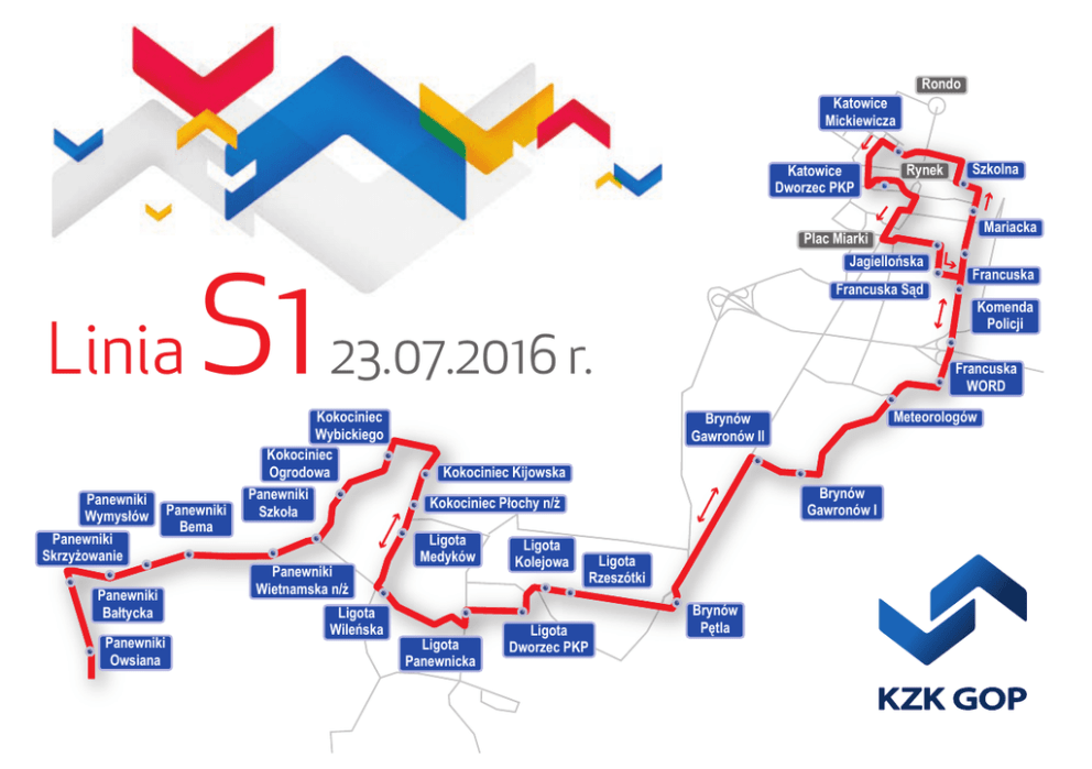 Rondo Katowice Mickiewicza Katowice Dworzec PKP Linia S1 Panewniki Skrzyżowanie Panewniki Bałtycka Panewniki Owsiana Panewniki Bema Szkolna Mariacka Plac Miarki Jagiellońska Francuska Sąd 23.07.2016 r. Kokociniec Wybickiego Kokociniec Ogrodowa Panewniki Wymysłów Rynek Panewniki Szkoła Ligota Wileńska Meteorologów Kokociniec Kijowska Brynów Gawronów I Kokociniec Płochy n/ż Panewniki Wietnamska n/ż Ligota Panewnicka Ligota Kolejowa Ligota Dworzec PKP Komenda Policji Francuska WORD Brynów Gawronów II Ligota Medyków Francuska Ligota Rzeszótki Brynów Pętla Katowice Górnośląska os. Paderewskiego Osiedle Paderewskiego Pomnik Katowice Francuska WORD Muchowiec Droga do Lotniska Mysłowice Cmentarz Osiedle Paderewskiego Trzy Stawy Mysłowice Tesco Kolonia Zuzanna n/ż Ćmok Tysiąclecia Giszowiec Kościół Giszowiec Radosna Linia Brzęczkowice Słupna Giszowiec Szyb Roździeński Giszowiec Przyjazna S3 Ćmok Rondo Mysłowice Dworzec PKP Giszowiec Przyjemna 23.07.2016 r. Brzęczkowice Kościół Brzęczkowice Szkoła Brzęczkowice Ogródki Działkowe n/ż Brzezinka Centrum Brzezinka Dworcowa Kosztowy Dzióbka Kosztowy Rynek Kosztowy Kosztowska n/ż Kosztowy Pętla Rondo Katowice Mickiewicza Linia S2 23.07.2016 r. Katowice Al. Korfantego Katowice Szkolna Katowice Dworzec PKP stanowisko 5 Katowice Mariacka Jagiellońska Katowice Francuska Plac Miarki Katowice Komenda Policji Katowice Francuska WORD Muchowiec Droga do Lotniska Osiedle Paderewskiego Powstańców Osiedle Paderewskiego Graniczna Osiedle Paderewskiego Pomnik Osiedle Paderewskiego Trzy Stawy zyk ńc Bo OSiR M ka czy e wic sło My ń Bo ice to By łow s My ka ms o eT a Bończyk Kościół Mysłowice Komenda Policji Janów Łokietka row wa ŚDM-7 Mysłowice Dworzec PKP 25-31.07.2016 r Mysłowice Cmentarz Bończyk Gałczyńskiego wic sło My Linia Bończyk MOSiR Mysłowice Szpital Janów Janowska Brzęczkowice Słupna Ćmok Rondo Mysłowice Tesco Brzęczkowice Słupna Brzęczkowice Kościół Brzęczkowice Kościół Brzęczkowice Szkoła Brzęczkowice Szkoła Morgi Szkoła Brzęczkowice Ogródki Działkowe n/ż Brzezinka Dworcowa Larysz Larysz Storczyków n/ż Wesoła Dzierżonia Wesoła Rynek Wesoła Piastów Śl. Brzęczkowice Ogródki Działkowe n/ż Brzezinka Topolowa Morgi Kościół Wesoła Mostek Kosztowy Rynek Brzezinka Leśna Morgi Sienkiewicza Brzezinka Centrum Kosztowy Dzióbka Mysłowice Dworzec PKP Brzezinka Reja zyk ńc Bo OSiR M Mysłowice Szpital a zyk ńc My wic sło o eB ka ms e wic ło ys M to By row ice w sło My a a ow T Ga Mysłowice Dworzec PKP Linia ŚDM-8 25-31.07.2016 r Mysłowice Komenda Policji Brzęczkowice Słupna Brzęczkowice Kościół Brzęczkowice Szkoła Brzęczkowice Ogródki Działkowe n/ż Brzezinka Centrum Brzezinka Dworcowa We R Kosztowy Dzióbka Kosztowy Rynek Kosztowy Kosztowska n/ż Kosztowy Pętla
