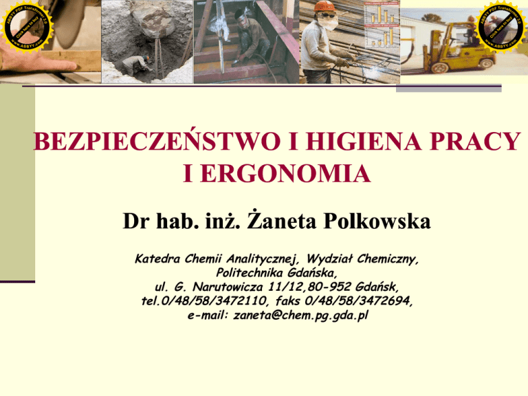 Y F T ra n sf o bu to re he C lic k he k lic C w. A B B Y Y.c om w w w w rm y ABB PD re to Y 3.0 3.0 bu y rm er Y F T ra n sf o ABB PD er Y w. A B B Y Y.c om BEZPIECZEŃSTWO I HIGIENA PRACY I ERGONOMIA Dr hab. inż. Żaneta Polkowska Katedra Chemii Analitycznej, Wydział Chemiczny, Politechnika Gdańska, ul. G. Narutowicza 11/12,80-952 Gdańsk, tel.0/48/58/3472110, faks 0/48/58/3472694, e-mail: [email protected] Y F T ra n sf o A B B Y Y.c bu to re he C lic k he k lic C w. om w w w w rm y ABB PD re to Y 3.0 3.0 bu y rm er Y F T ra n sf o ABB PD er Y w. BEZPIECZEŃSTWO PRACY W LABORATORIUM CHEMICZNYM A B B Y Y.c om A B B Y Y.c F T ra n sf o Y rm C lic k he re to bu y ABB to re he k lic C w. PD BEZPIECZEŃSTWO PRACY W LABORATORIUM CHEMICZNYM om w w w w Y 3.0 3.0 bu y rm er Y F T ra n sf o ABB PD er Y w. A B B Y Y.c om üNajlepszym sposobem zmniejszenia do minimum ryzyka wypadku jest dokładne poznanie właściwości używanych materiałów. Należy zapoznać się z informacjami o rodzaju niebezpieczeństwa (R) oraz z poradami bezpieczeństwa (S). Należy przestrzegać wszystkich instrukcji bezpiecznej pracy w laboratorium. Jeżeli mimo wszystko zdarzy się wypadek, jego konsekwencje mogą być zredukowane do minimum poprzez zastosowanie odpowiednich zabezpieczeń oraz określonego trybu postępowania. ü ü ü A B B Y Y.c Y PD F T ra n sf o rm ODZIEŻ OCHRONNA W LABORATORIUM CHEMICZNYM C lic k he re to bu y ABB to re he k lic C w. om w w w w Y 3.0 3.0 bu y rm er Y F T ra n sf o ABB PD er Y üPodczas pracy w laboratorium w. A B B Y Y.c om chemicznym należy zawsze zakładać fartuch ochronny, ochronne okulary i, jeżeli jest to konieczne rękawice. Fartuch powinien być zapinany na guziki (nie stosować zamków błyskawicznych) i sporządzony z materiału bawełnianego lub wełnianego. Nie należy używać fartuchów uszytych z łatwopalnych materiałów syntetycznych. Wskazane jest, aby w laboratorium używać specjalnych, sznurowanych bucików na niskich obcasach. Jeżeli osoba pracująca w laboratorium chemicznym nosi długie włosy, powinna je schować pod odpowiednim bawełnianym czepkiem lub chustą. Na czas pracy w laboratorium powinno się zdjąć biżuterię, taka jak: pierścionki, obrączki, bransolety czy naszyjniki. ü ü ü ü A B B Y Y.c F T ra n sf o Y rm C lic k he re to bu y ABB to re he k lic C w. PD ZASADY OSTROŻNEJ PRACY W LABORATORIUM CHEMICZNYM om w w w w Y 3.0 3.0 bu y rm er Y F T ra n sf o ABB PD er Y w. A B B Y Y.c om Przeciwdziałanie powstaniu ładunków elektrostatycznych w laboratorium chemicznym üŁadunki elektrostatyczne, gromadzące się na przykład na plastykowych powierzchniach (na klamkach drzwi lub poręczach schodów), mogą być przyczyna zapłonu niektórych substancji. Elektrostatyczne ładunki, a co za tym idzie – iskrzenie, mogą powstawać podczas przechodzenia osób izolowanych od ziemi przez nieprzewodzące obuwie lub wykładzinę podłogową. Ładunki elektrostatyczne mogą powstawać podczas napełnienia pojemników takimi cieczami jak: cykloheksan, toluen, disiarczek węgla, eter dietylowy. Iskrzenie może mieć miejsce podczas nagłego wydzielania gazów takich jak: wodór czy acetylen, zawierających rozpylone cząstki rdzy. ü ü A B B Y Y.c Y PD F T ra n sf o ABB rm to bu y ZASADY OSTROŻNEJ PRACY W LABORATORIUM CHEMICZNYM C lic k he re to re he k lic C w. om w w w w Y 3.0 3.0 bu y rm er Y F T ra n sf o ABB PD er Y w. A B B Y Y.c om Przenoszenie i podnoszenie narażonych na rozbicie naczyń z odczynnikami chemicznymi üPodnosząc lub przenosząc naczynia z chemikaliami, należy chwytać je nie tylko za szyjkę, lecz także podtrzymywać je od strony dna. Specjalnej ostrożności wymagają silne ochłodzone naczynia szklane, bowiem kondensująca się na ich powierzchni woda powoduję, iż są one śliskie i łatwo wysuwają się z rak. Do przenoszenia naczyń z chemikaliami wzdłuż korytarzy lub po schodach należy używać specjalnych transporterów lub przenosić je w plastykowych wiadrach. ü ü A B B Y Y.c Y PD F T ra n sf o ABB rm to bu y ZASADY OSTROŻNEJ PRACY W LABORATORIUM CHEMICZNYM C lic k he re to re he k lic C w. om w w w w Y 3.0 3.0 bu y rm er Y F T ra n sf o ABB PD er Y w. A B B Y Y.c om Ogrzewanie üPodczas ogrzewania istotnym jest dobranie odpowiedniego medium grzewczego. Media grzewcze powinny charakteryzować się dobrym przewodnictwem, wysoką temperaturą wrzenia, niską lotnością i palnością oraz brakiem toksyczności. ØDo ogrzewania w temperaturze do 100oC doskonale nadaje się łaźnia wodna. ØDla ogrzewania w temperaturze do 250oC używane są zwykle oleje silikonowe. ØNie poleca się stosowania olejów mineralnych, gdyż w wyższych temperaturach parują ich niskocząsteczkowe składniki. ØDo ogrzewania w temperaturach powyżej 250oC stosować należy łaźnie metalowe ze stopem Wooda lub łaźnie piaskowe. A B B Y Y.c Y PD F T ra n sf o ABB rm to bu y ZASADY OSTROŻNEJ PRACY W LABORATORIUM CHEMICZNYM C lic k he re to re he k lic C w. om w w w w Y 3.0 3.0 bu y rm er Y F T ra n sf o ABB PD er Y w. A B B Y Y.c om Chłodzenie üPodczas prowadzenia reakcji egzotermicznych, w procesach skraplania gazów a także podczas pracy pod obniżonym ciśnieniem stosuje się intensywne chłodzenie. Mieszaniny chłodzące, obniżające temperaturę poniżej -50oC, przygotowuje się w odpowiednich, szerokoszyjnych termosach (uwaga - niebezpieczeństwo implozji). Specjalne termosy stosuje się do pracy z ciekłym azotem (196oC). Ponieważ tlen ma tendencję do skraplania się w ciekłym azocie, istnieje niebezpieczeństwo wybuchu. Nie należy wylewać zawartości łaźni chłodzącej na stół laboratoryjny. Podczas pracy z substancjami nisko schłodzonymi, takimi jak ciekły azot czy stały dwutlenek węgla, należy szczególnie chronić oczy, skórę i śluzówki, używając fartucha, rękawic oraz ochronnych okularów. ü ü ü A B B Y Y.c Y PD F T ra n sf o ABB rm to bu y ZASADY OSTROŻNEJ PRACY W LABORATORIUM CHE