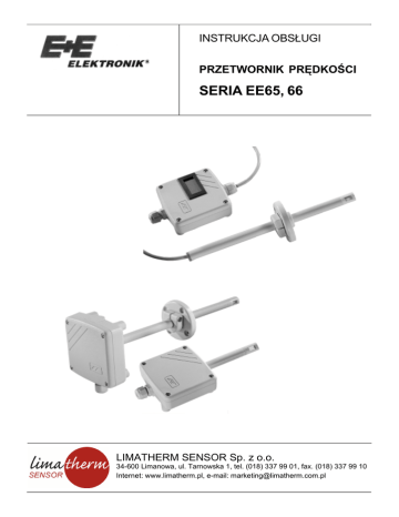 INTROL Sp. z o.o. ul. Kociuszki 112, 40-519 Katowice, tel. 032/ 78 90 110, fax 032/ 205 33 77, e-mail: [email protected], www.introl.pl INSTRUKCJA OBS£UGI PRZETWORNIK PRÊDKOCI SERIA EE65, 66 LIMATHERM SENSOR Sp. z o.o. 34-600 Limanowa, ul. Tarnowska 1, tel. (018) 337 99 01, fax. (018) 337 99 10 Internet: www.limatherm.pl, e-mail: [email protected] 1 LIMATHERM SENSOR Sp. z o.o. 34-600 Limanowa ul. Tarnowska 1, tel. (18) 337 99 01, fax. (18) 337 99 10 SPIS TRECI Dane techniczne ................................................................................. 3 Wymiary (mm) ............................................................................................. 4 Schemat po³¹czeñ .............................................................................. 5 Sposób zamawiania ........................................................................... 5 2 LIMATHERM SENSOR Sp. z o.o. 34-600 Limanowa ul. Tarnowska 1, tel. (18) 337 99 01, fax. (18) 337 99 10 Przetworniki prêdkoci powietrza EE 65, EE 66 s¹ idealne w zastosowaniach do dok³adnej kontroli wentylacji. Dzia³aj¹ w oparciu o nowatorsk¹ zasadê anemometru z gor¹c¹ warstw¹. Czujnik cienkowarstwowy E + E gwarantuje bardzo dobr¹ dok³adnoæ przy niskiej prêdkoci powietrza, co nie jest mo¿liwe przy stosowaniu konwencjonalnych anemometrów z powszechnie stosowanymi czujnikami temperaturowymi lub termistorami kulkowymi NTC (ujemny wspó³czynnik temperaturowy). Ponadto czujnik E + E jest znacznie bardziej niewra¿liwy na py³ i zabrudzenia ni¿ anemometry dzia³aj¹ce na innych zasadach. Oznacza to wysok¹ niezawodnoæ i niskie koszty konserwacji. EE 65-A/B EE 66-A/B Seria EE65 ,EE65 dostêpna jest z wyjciem pr¹du lub napiêcia, zakres pomiarowy oraz czas reakcji mog¹ zostaæ wybrane przez u¿ytkownika za pomoc¹ zworek - jamperów Niska zale¿noæ k¹towa umo¿liwia ³atwy, op³acalny monta¿. Dostêpny jest integralny wywietlacz LCD i wersja ze zdaln¹ sond¹ czujnikow¹. Typowe zastosowania - HVAC - kontrola procesu i otoczenia EE 65-C EE 66-C Cechy - niska zale¿noæ k¹towa - ³atwy monta¿ - nastawiany do wymagañ zastosowania Dane techniczne Wartoci pomiarowe dla EE65 Zakres roboczy 1) 0 ... 10 m/s 0 ... 15 m/s 0 ... 20 m/s Wyjcie 1) 0 10 V - 1 mA < IL < 1 mA 4 20 mA RL < 450 Ω Dok³adnoæ przy 20oC, 0 ... 10 m/s ± (0.3 m/s + 3 % wartoci pomiarowej) 45 % RH oraz 1013 hPA 0 ... 15 m/s ± (0.3 m/s + 3 % wartoci pomiarowej) 0 ... 20 m/s ± (0.3 m/s + 4 % wartoci pomiarowej) Czas reakcji t90 przy 10 m/s1) typ. 2 sek. lub typ. 0.2 sek. 3 LIMATHERM SENSOR Sp. z o.o. 34-600 Limanowa ul. Tarnowska 1, tel. (18) 337 99 01, fax. (18) 337 99 10 Wartoci pomiarowe dla EE 66 Zakres roboczy 1) 0 ... 1 m/s 0 ... 1,5 m/s 0 ... 2 m/s Wyjcie 1) 0 10 V - 1 mA < IL < 1 mA 4 20 mA RL < 450 Ω Dok³adnoæ przy 20oC, 0 ... 0,1 m/s ± (0,04 m/s + 2 % wartoci pomiarowej) 45 % RH oraz 1013 hPA 0 ... 0,15 m/s ± (0,05 m/s + 2 % wartoci pomiarowej) 0 ... 2 m/s ± (0,06 m/s + 2 % wartoci pomiarowej) Czas reakcji t90 przy 10 m/s1) typ. 2 sek. lub typ. 0.2 sek. Ogólne Zasilanie Zu¿ycie pr¹du dla zasilania AC dla zasilania DC Zale¿noæ k¹towa Po³¹czenie elektryczne Kompatybilnoæ elektromagnetyczna Obudowa / klasa ochrony Zakres temperatury 1) SELV 24 VAC/DC + 10 % max 150 mA max 90 mA < 3 % pomiaru przy / ∆α / < 10o zaciski rubowe max. 1.5 mm2 EN 50081-1 EN 50082-1 EN 50082-2 Polycarbonat / IP65, z wywietlaczem LC IP40 temperatura robocza -10 ... +50oC temperatura sk³adowania -30 ... +60oC Wybieralne przez ustawienie zwieracza Wymiary (mm) TYP A TYP C TYP B d³ugoæ kabla: standardowa 1 m inna d³ugoæ kabla (max. 10 m) na ¿yczenie 4 LIMATHERM SENSOR Sp. z o.o. 34-600 Limanowa ul. Tarnowska 1, tel. (18) 337 99 01, fax. (18) 337 99 10 Schemat po³¹czeñ zasilanie 24 V AC/DC + 10 % V + = napiêcie zasilania GND = uziemienie AV = wyjcie przep³ywu powietrza Sposób zamawiania MODEL OBUDOWA D£UGOÆ D£UGOÆ SONDY (wg A) przewodu dla WYWIETLACZ modelu C prêdkoæ (V) monta¿ nacienny (A) 100 mm (3) 1 m bez kodu bez wyswietlacz (bez kodu) monta¿ w kanale (B) 200 mm (5) 2 m (K 200) z wywietlaczem (D02) 5 m (K 500) oddzielna sonda czujnika (C) inne (x) 10m (K1000) EE65/66 Przyk³ad zamówienia EE 65-VB5-D02 5 model: obudowa: prêdkoæ monta¿ w kanale d³ugoæ sondy: wywietlacz: 200 mm z wywietlaczem LC EE 66-VC5k200DO2 model: prêdkoæ monta¿: d³ugoæ czujnika: d³ugoæ przewodu wywietlacz: z odseperowan¹ sond¹ 200 mm 2m z wywietlaczem LC