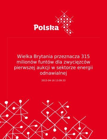 Wielka Brytania przeznacza 315 milionów funtów dla zwycięzców pierwszej aukcji w sektorze energii odnawialnej 2015-04-16 13:09:33 2 Wielka Brytania przeznacza 315 milionów funtów dla zwycięzców pierwszej aukcji w sektorze energii odnawialnej W pierwszym przetargu na projekty odnawialnych źródeł energii, które pomogą zwiększyć inwestycje w niskoemisyjnej energetyce węglowej, Wielka Brytania przyznała 27 projektom kontrakty inwestycyjne o wartości ponad 315 mln funtów. Rząd Camerona chce oprzeć reformę rynku energii na kontraktach różnicowych CFD (contracts-for-difference). To rodzaj długoterminowej umowy z gwarancją ceny energii. Gdy cena rynkowa jest niższa od gwarantowanej, tzw. strike price, producentowi różnicę dopłaca rząd, gdy jest wyższa - producent różnicę zwraca. Nagrodzeni producenci energii uzyskają gwarancje minimalnej ceny energii elektrycznej przez okres ponad 15 lat. Jak podało w swoim oświadczeniu Ministerstwo ds. energii i zmian klimatu (Department of Energy and Climate Change), nagrodzone kontrakty CFD będą w sumie generować 1,1 GW energii i obejmują m.in. dwie morskie farmy wiatrowe, 15 lądowych farm wiatrowych i pięć projektów systemów fotowoltaicznych (photovoltaic - PV). Minister ds. energii i zmian klimatu, Ed Davey powiedział – „Te projekty mogą zasilić 1,4 mln domów, stworzyć tysiące "zielonych" miejsc pracy i dać ogromny impuls dla źródeł energii z własnego ogródka przy jednoczesnej redukcji naszej zależności od niestabilnych rynków zagranicznych”. Wśród wybranych projektów były m.in. – morska farma wiatrowa Scottish Power Renewables - East Anglia One (714 MW), morska farma wiatrowa Mainstream Renewable Power - Neart na Gaoithe (450 MW) przy wybrzeżu Szkocji i trzy lądowe farmy wiatrowe RWE Innogy. Kolejna runda akcji CFD odbędzie się jesienią tego roku. Rząd powiedział, że finansowanie kontraktów CFD dla odnawialnych źródeł energii oraz technologii wychwytywania i składowania dwutlenku węgla może do roku finansowego 2020/21 wzrosnąć do ponad 1 mld funtów rocznie. Źródło: Reuters 3
