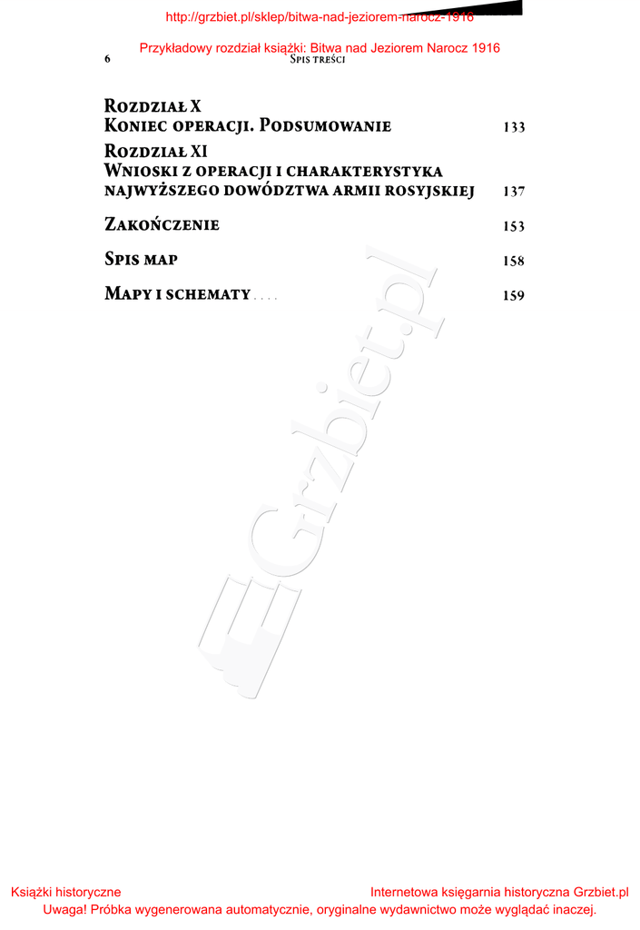 http://grzbiet.pl/sklep/bitwa-nad-jeziorem-narocz-1916 6 Przykładowy rozdział książki: Bitwa nad Jeziorem Narocz 1916 SPIS TREŚCI RoznziAŁX KONIEC OPERACJI. PODSUMOWANIE 133 ROZDZIAŁ XI WNIOSKI Z OPERACJI I CHARAKTERYSTYKA NAJWYŻSZEGO DOWÓDZTWA ARMII ROSYJSKIEJ 137 ZAKOŃCZENIE 153 SPIS MAP 158 MAPY I SCHEMATY. . 159 Książki historyczne Internetowa księgarnia historyczna Grzbiet.pl Uwaga! Próbka wygenerowana automatycznie, oryginalne wydawnictwo może wyglądać inaczej. http://grzbiet.pl/sklep/bitwa-nad-jeziorem-narocz-1916 68 Przykładowy rozdział książki: Bitwa nad Jeziorem Narocz 1916 RozDZIAŁ VI na obszarze przeciwnika, dokąd lecą i jakie szkody przynoszą, tym samym w ogóle nie zdawali sobie sprawy z tego, co się tam odbywa. Tymczasem na odcinkach grup armijnych 2. Armii działo się, co następuje. GRUPA GENERAŁA PLESZKOWA ROZWIJANIE WOJSK GRUPY Wykonując polecenie dowódcy armii dotyczące przełamania umocnionego pasa przeciwnika generał Pleszkow dyrektywą nr 882 z 16 marca rozwinął swo ją grupę (I i XXVII Korpusy Armijne oraz I Korpus Syberyjski i VII Korpus Kawalerii) do ataku w sposób uwidoczniony na mapie nr 11. Należy tu zwrócić uwagę dwie rzeczy: a) zagęszczenie sił na styku pierwszaliniowych korpusów: I Armijnego - na jego lewym skrzydle i I Syberyjskiego - na jego prawym skrzydle; b) duże oddalenie od linii frontu i miejsca przełamania VII Korpusu Kawale rii, który, według Naczelnego Dowództwa i dowództwa Frontu, miał wejść w przełamanie i rozwijać powodzenie ataku. Jednostkom wyznaczono następująco zadania: l) rozpoczęcie natarcia- na specjalny rozkaz; 2) cała artyleria grupy ma być gotowa do rozpoczęcia na specjalny rozkaz do wódcy grupy potężnego ostrzału nieprzyjacielskich pozycji, zgodnie z wcze śniejszymi rozkazami wydanymi w tej sprawie; 3) kiedy widoczne już będą skutki przygotowania artyleryjskiego, I Korpus Armijny i I Korpus Syberyjski mają zaatakować nieprzyjaciela i skoncen trowanym, połączonym naciskiem przerwać jego linie: I Korpus Armijny -na odcinku Mikuliszki-Buczeliszki (wył.), I Korpus Syberyjski- na od cinku Buczeliszki-las łapiński; 4) po przełamaniu nieprzyjacielskiego frontu korpusy w asyście artylerii szybko i bez przerw mają nacierać w celu zajęcia pasa wzgórz na linii Ho duciszki-Komaje, mając jako granice natarcia: między I Korpusem Armij nym i I Korpusem Syberyjskim linię Wołodźki Małe-Buczeliszki-Świłele -Horodniki-Jankowicze- wszystko dla I Korpusu Syberyjskiego, a między I Korpusem Syberyjskim i grupą generała Sireliusa - linię Duki-Komaje -Lyntupy-Strunojcie -wszystko dla powyższego korpusu; S) dowódcy artylerii grupy wyznaczono zadanie przygotowania do tego cza su podległej mu artylerii, oprócz artylerii XXVII Korpusu Armijnego, do przejazdu na nowe pozycje na zachód od linii jezior; artyleria XXVII Kor pusu miała powrócić do swojego korpusu. Osobno potwierdzono I Korpusowi Armijnemu zadanie ubezpieczenia działań całej grupy od północy, zaś XXVII Korpus Armijny miał pozostawać w rejonie swojej koncentracji, tworząc odwód grupy. Sztabowi tego korpusu powierzono zadanie dokładnego zapoznania się z trasami prowadzącymi z reKsiążki historyczne Internetowa księgarnia historyczna Grzbiet.pl Uwaga! Próbka wygenerowana automatycznie, oryginalne wydawnictwo może wyglądać inaczej. http://grzbiet.pl/sklep/bitwa-nad-jeziorem-narocz-1916 70 Przykładowy rozdział książki: Bitwa nad Jeziorem Narocz 1916 RozoziAL VI ciszki znajdują się 8 km od linii frontu, Kornaje- 12 km, co stanowi mniej niż dzienne zadanie, jakie stawia się korpusom przy ofensywie. A gdzie na tarcie na Łyntupy, które nakazano w dyrektywie dowódcy armii? Gdzie wyjście grupy na linię Święciany-Michaliszki-Gierwiaty? Niczego takiego w dyrektywie generała Pleszkowa nie ma. Zawężając zadania korpusom, generał Pleszkow zdjął z nich perspektywę dalszych działań, skazał swoje wojska na dreptanie w miejscu z bezpośredniej bliskości miejsca przełama nia i stworzył warunki do niewykonania tego podstawowego zadania, jakie postawił armii Front, tj. rozbicia przeciwnika. Następnie, całkowicie bez sensowne jest ustawienie XXVII Korpusu Armijnego w odwodzie za lewą, bierną częścią odcinka grupy. Poza tym, w przypadku oddziałów atakują cych, trudniejsze zadanie zostało wyznaczone lewoskrzydłowym, słab szym jednostkom, które po przełamaniu miały dojść do linii Hoduciszki -Komaje, tj. przejść odległość nie 8 km, jaką ustalono dla oddziałów ude rzeniowych, ale aż półtora raza dalej - 12 km. W zarządzeniu wydanym przez generała Pleszkowa wyczuć można, że sam chyba niezbyt wierzył w możliwość wykonania zadania, które stosowną dyrekty wą wyznaczył jego wojskom dowódca armii, i bardzo bał się kontrataku ze strony przeciwnika. Stąd ograniczone zadanie wojsk grupy - dobrze, jeśli je wypełnią, bez zawracania sobie głowy czymś większym. Stąd też głębokie urzutowanie jed nostek i, jak zobaczymy dalej, wymuszone tą sytuacją działania. Przyjrzymy się temu, zaczynając od prawego skrzydła, od I Korpusu Armijnego. NATARCIE I KORPUSU ARMIJNEGO miał za zadanie 1 "mając część sił na odcinku Miedziuny-Wilejty (wył.) skoncentrować co najmniej sześć pułków do ataku na odcinek Wilejty -Buczeliszki (wył.), kierując swoje główne uderzenie na odcinek Mikuli szki-Buczeliszki (wył.), ubezpieczając przy tym całą operację od północy": Zgodnie z tym dowódca korpusu rozkazał: a) I brygadzie z prawoskrzydłowej 59. dywizji piechoty, po odrzuceniu czoło wych oddziałów przeciwnika do rzeki Komajki, zająć zachodni skraj lasu na prawym brzegu tej rzeki i utrzymując się naprzeciwko przeciwnika na odcinku Miedziuny-Wilejty (wył.), ubezpieczać całą operację od północy; b) 22. dywizji piechoty zaatakować przeciwnika na odcinku Wilejty-Bucze liszki (wył.), przy czym głównym uderzeniem z użyciem 