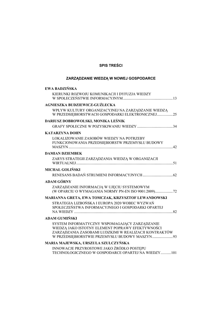 spis treści zarządzanie wiedzą w nowej gospodarce ewa