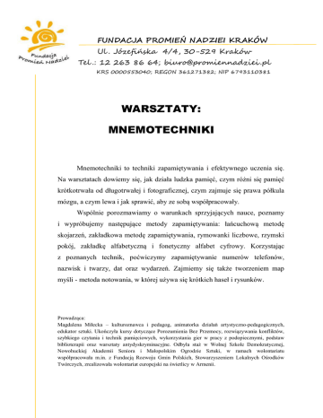 warsztaty: mnemotechniki - Fundacja Promień Nadziei