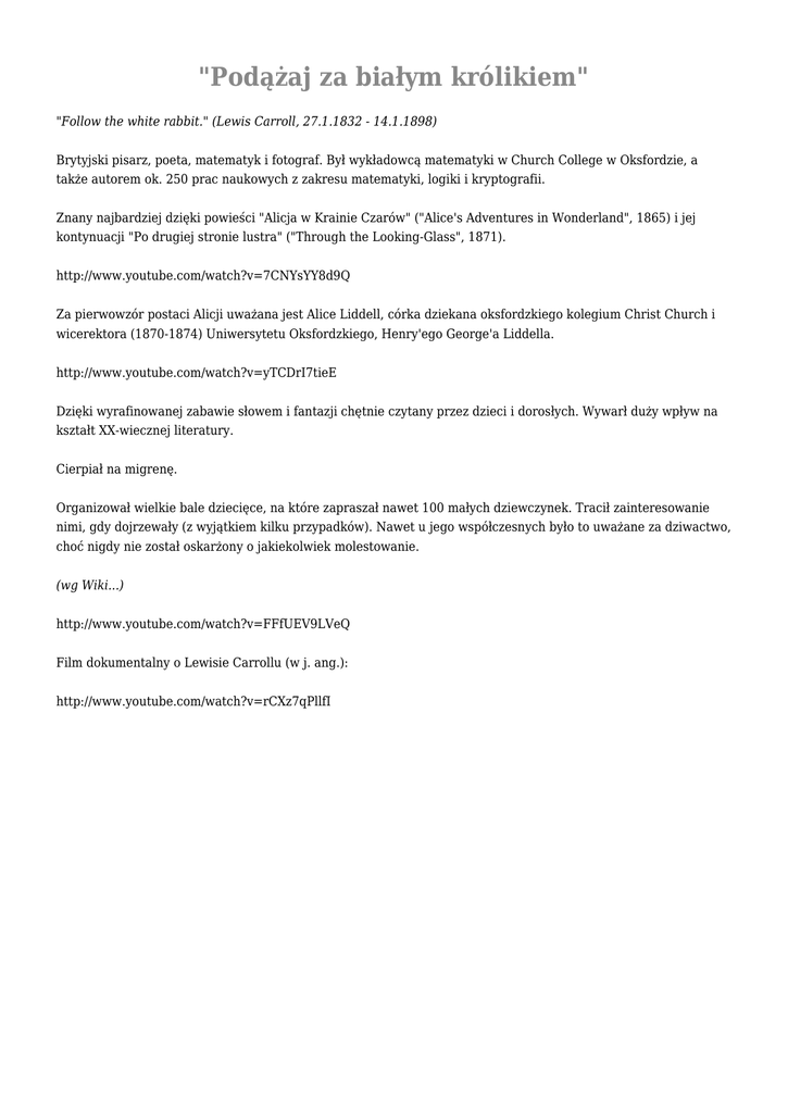"Follow the white rabbit." (Lewis Carroll, 27.1.1832 - 14.1.1898)