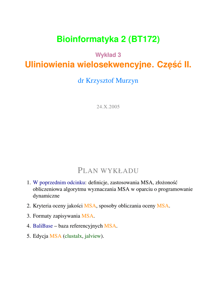 1. W poprzednim odcinku: definicje, zastosowania MSA, złożoność