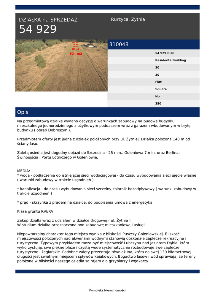 DZIAŁKA na SPRZEDAŻ 310048 Opis