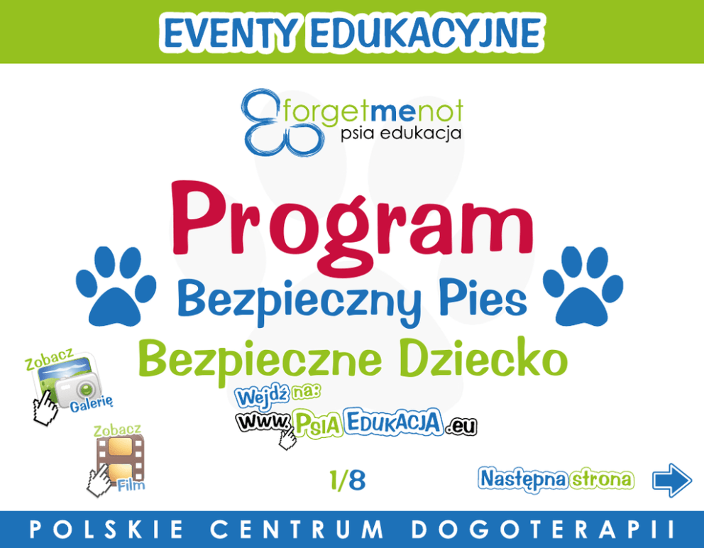Program Bezpieczny Pies Bezpieczne Dziecko 1/8 OFERTA SPOTKANIA EDUKACYJNEGO W GALERII HANDLOWEJ Wariant I 1500 zł netto Całodzienne zajęcia edukacyjne (w godzinach otwarcia Galerii) + koszt dojazdu W spotkaniu uczestniczą 2 osoby + 3 psy Zapewniamy : - kilkadziesiąt indywidualnie opracowanych zabaw edukacyjnych dla dzieci - niski stół dla dzieci o wymiarach ok 200x100cm - 10 poduszek dla dzieci - dywan (wymiar 4x5m) - istnieje możliwość zmniejszenia lub powiększenia powierzchni stoiska II dzień zajęć edukacyjnych - 1000 zł netto 2/8