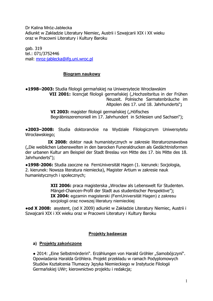 Pełny Biogram - Instytut Filologii Germańskiej UWr