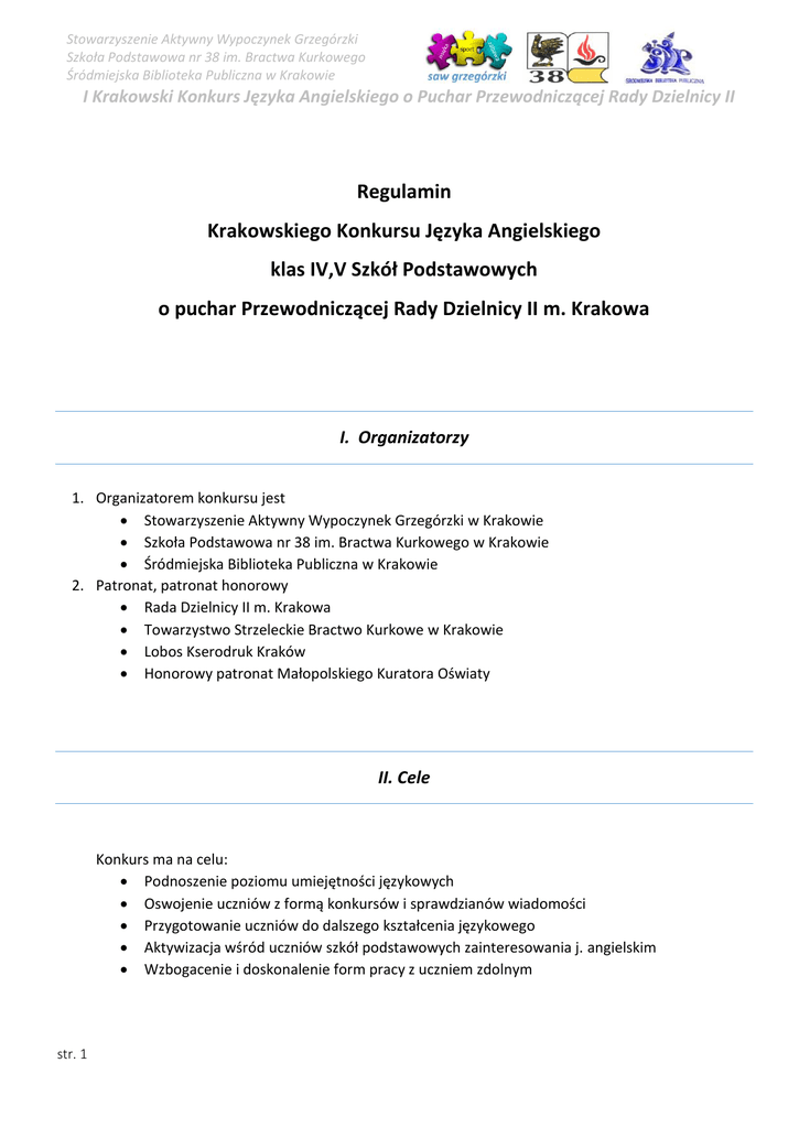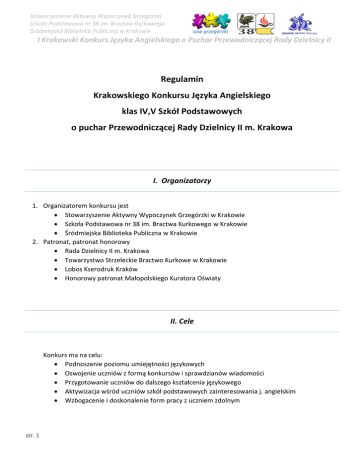 Regulamin Krakowskiego Konkursu Języka Angielskiego klas IV,V