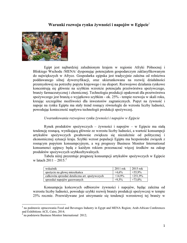 Warunki rozwoju rynku żywności i napojów w Egipcie1