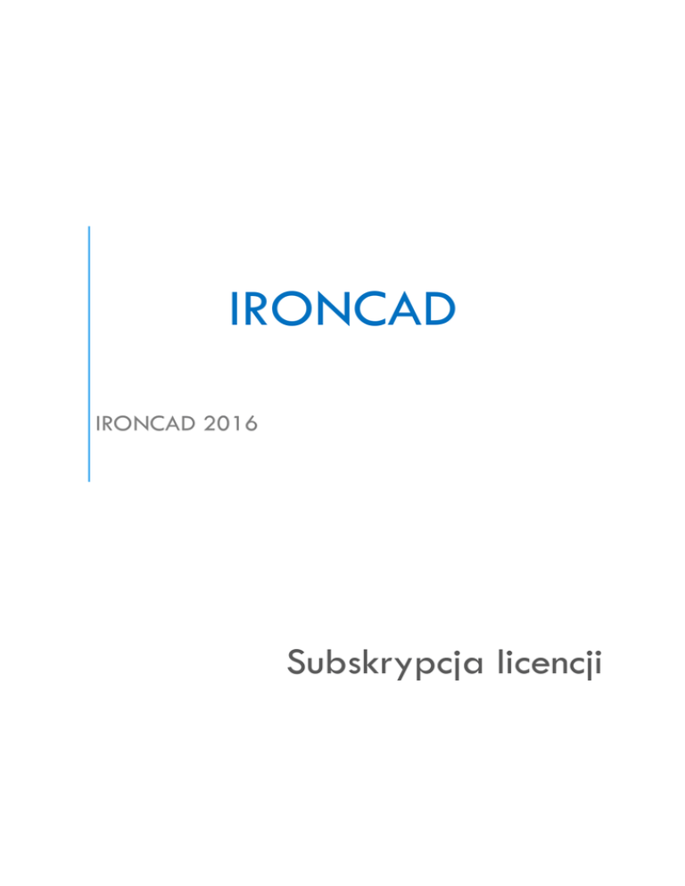 IRONCAD IRONCAD 2016 Subskrypcja licencji IRONCAD| Subskrypcja licencji Spis treści 1. Usługa subskrypcji licencji IRONCAD .............................................................................................................. 2 2. Co obejmuje usługa subskrypcji IRONCAD? .................................................................................................. 2 3. Jak wykupić dostęp do usług subskrypcji? ..................................................................................................... 3 4. Dostęp do nowych wersji IRONCAD ............................................................................................................... 3 5. Jak sprawdzić ważność subskrypcji?............................................................................................................... 3 6. Co obejmuje pomoc techniczna? ...................................................................................................................... 4 Strona | 1 IRONCAD| Subskrypcja licencji 1. Usługa subskrypcji licencji IRONCAD Usługa subskrypcji licencji IRONCAD oferuje nowoczesne i elastyczne metody pozwalające na maksymalne wykorzystanie inwestycji klienta w oprogramowanie. W ramach aktywnej subskrypcji użytkownik zyskuje możliwośd nabywania oraz uzyskiwania dostępu do najnowszych wersji oprogramowania oraz dodatkowych usług, potrzebnych do rozwoju firmy, utrzymania konkurencyjności oraz zwiększenia wydajnośd pracy. Usługa subskrypcji pozwala również aktywniej uczestniczyd w życiu globalnej społeczności użytkowników IRONCAD. 2. Co obejmuje usługa subskrypcji IRONCAD? Klient posiadający aktywną subskrypcję licencji IRONCAD: posiada dostęp do najnowszych wersji oprogramowania (Upgrade’ów) oraz poprawek (HotFix’ów), może korzystad z dodatkowego numeru licencji do użytku domowego bądź mobilnego,który można wygenerowad na stronie http://www.ironcad.com/index.php/support/license-request, wybierając opcję Home or Mobile License, Strona | 2 IRONCAD| Subskrypcja licencji posiada pełnydostęp do wsparcia technicznego producenta, http://www.ironcad.com/contact-support/ posiada pełny dostęp do społeczności użytkowników IRONCAD, http://community.ironcad.com/ ma dostęp do specjalistycznego wsparcia technicznego (usługa dostępna również bez aktywnej subskrypcji), ma możliwości wpływania na dalszy rozwój oprogramowania poprzez zgłaszanie zapotrzebowao na zmiany i ulepszenia. 3. Jak wykupić dostęp do usług subskrypcji? Najprostszą metodą wykupienia subskrypcji IRONCAD jest kontakt z dystrybutorem oprogramowania. Klient posiada możliwośd zakupu subskrypcji w dowolnym momencie, bez żadnych dodatkowych opłat. 4. Dostęp do nowych wersji IRONCAD Powiadomienia o nowych wersjach oprogramowania przesyłane są mailem. Można je również pobrad samodzielnie ze strony producenta http://www.ironcad.com. 5. Jak sprawdzić ważność subskrypcji? Subskrypcja jest ważna przez okres 12 miesięcy, licząc od daty jej zakupu.Informacja o ważności subskrypcji znajduje się na certyfikacie (poniżej zamieszczono przykładowy certyfikat). Jak można zauważyd, subskrypcja była aktywna do 30.06.2016. Strona | 3 IRONCAD| Subskrypcja licencji 6. Co obejmuje pomoc techniczna? Wsparcie techniczne dostępne jest w języku polskim. Obejmuje konsultacje świadczone telefonicznie, mailowo lub poprzez zdalny pulpit. Istnieje również możliwośd świadczenia pomocy technicznej w siedzibie klienta, na drodze indywidualnych ustaleo. Strona | 4