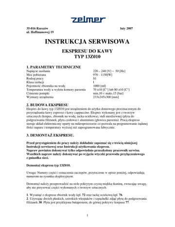 instrukcja serwisowa ekspresu do kawy typ 13z010